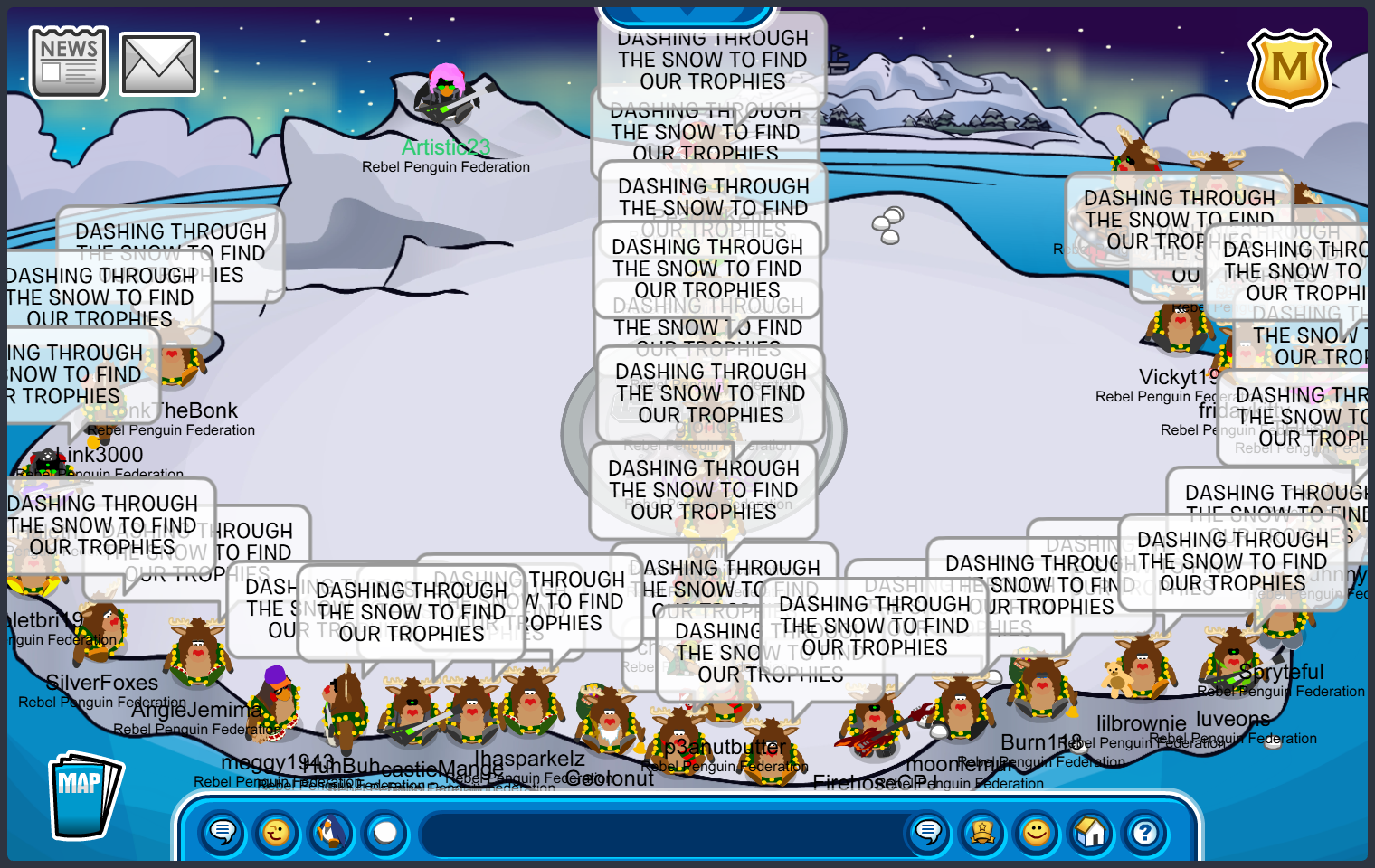 “It’s impossi-bell not to feel festive right now.” Hey there Ca-Rolling Rebels! Today we logged on to CPJ – Marshmallow and sang our hearts right into the holiday spirit. With our full of chant tactics, and our applauding formations, we managed to harmonize our way down to Casa Fiesta. To make it more magnifying, we ended our event with an igloo raid! Thank you to everyone who came to the event, hope to see you on the next one!
