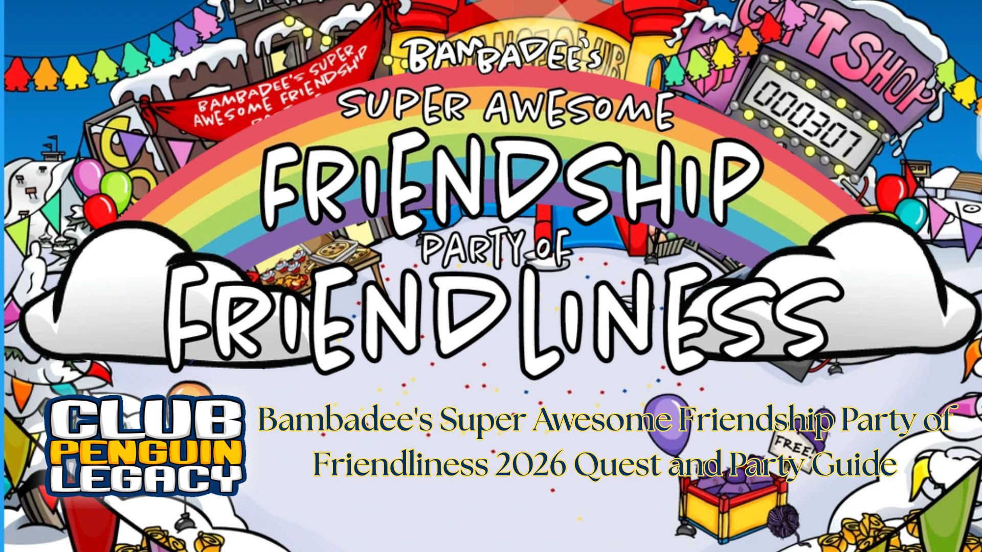 Welcome to the Bambadee’s Super Awesome Friendship Party of Friendliness Guide for Club Penguin Legacy! The island has been transformed into a colorful celebration of kindness, positivity, and of course, friendship! So grab your best buddy, throw on your brightest outfit, and get ready as we explore everything this super awesome party has to offer. Come along with me, and let’s make this Friendship Party one to remember!