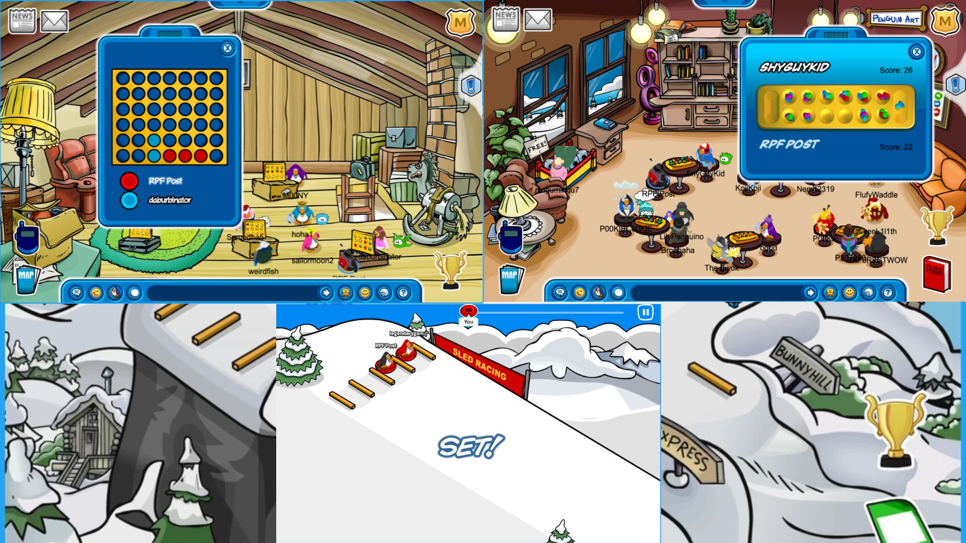 This quest can be done by playing playing Connect 4 in the Ski Lodge/ Attic, Mancala in the Book Room and Sled Racing at the Ski Hill. A important thing to note is that this must be done in login session!