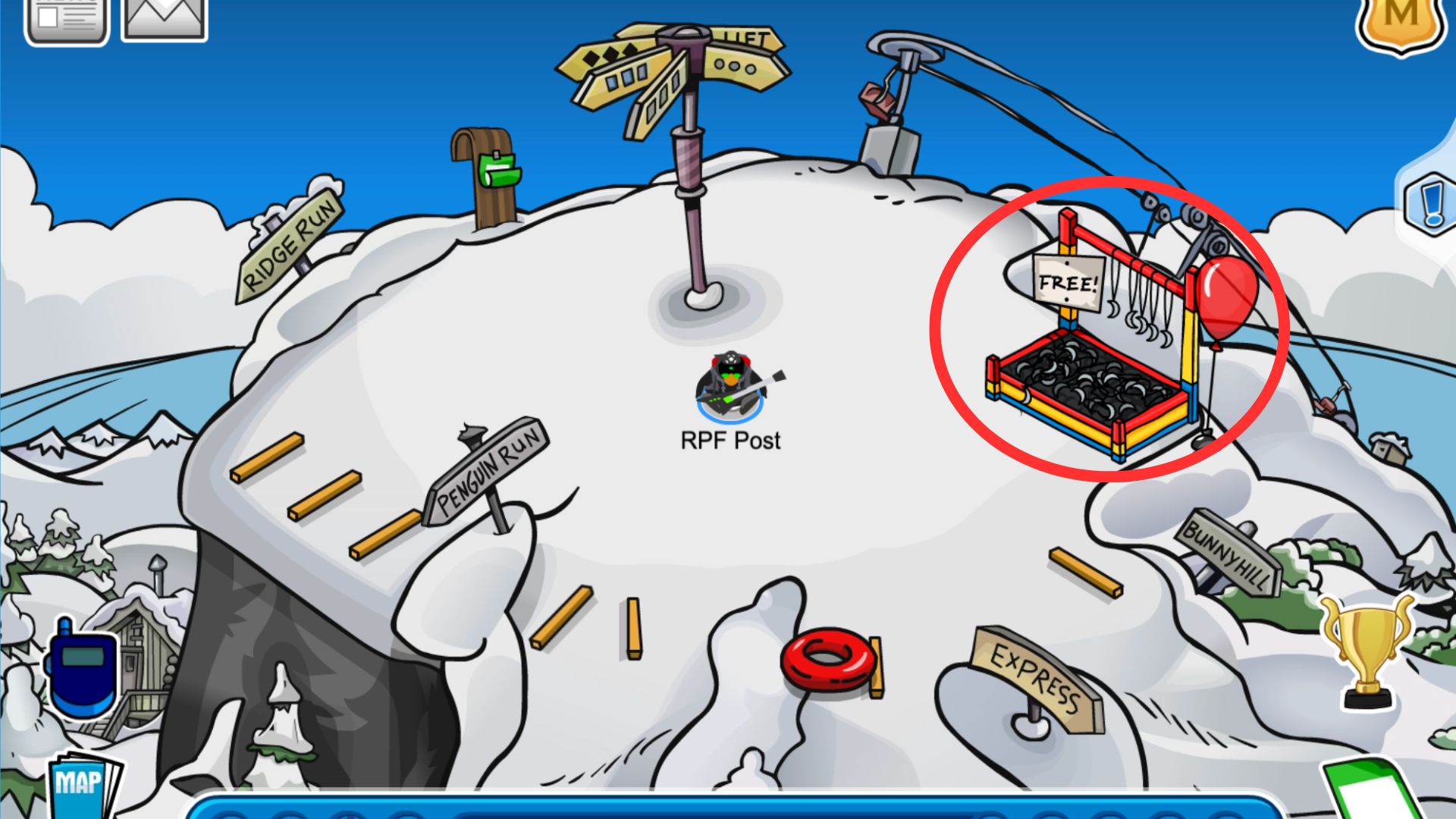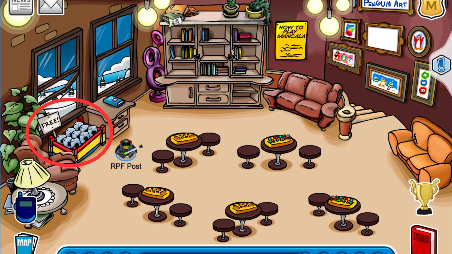 There are four items that you can get during the party! The first item is located at the Ski Hill, the second item is located in Town, the third item is located in the Book Room and the last item is located at the snow forts!
