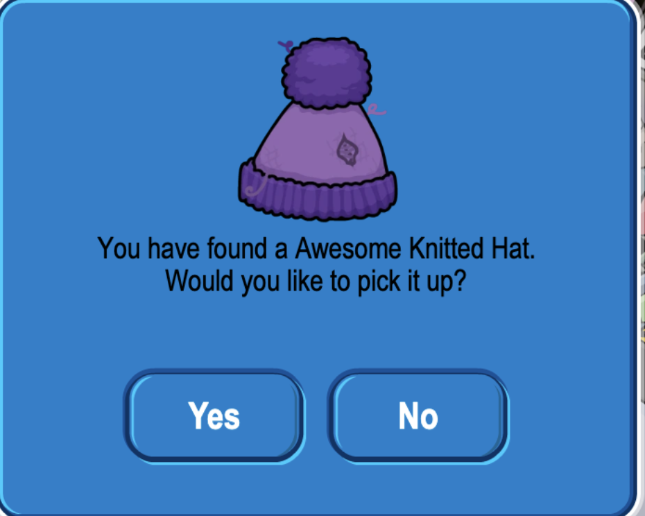 There is one free item in this room! The Awesome Knitted Hat that is located in the bottom right side of the room!