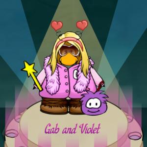 I really like the Heart Antennae headband from this year’s Valentine’s mini event on CPJ. It goes so well with the Beflutter-less, and the Befluttered hair has been my go-to ever since I was a kid, so this still feels very “me.” The Pink Letterman Jacket is another favourite of mine. It’s really cute and I hope they bring it back soon on Journey. The Magic Wand is probably my all time favourite hand item in the whole game, it just works with everything. And of course, the outfit wouldn’t feel complete without the Fuzzy Boots and Pink Feather Boa, which I finally managed to get through my pink puffle on CPJ. Lastly, I couldn’t leave out my purple puffle, Violet. Purple puffles have always been my favourite because they have such a cute face.![]()