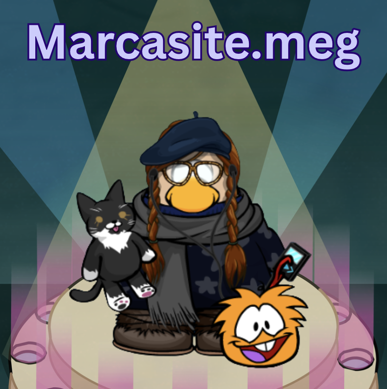First up is Marcasite.meg! Her outfit includes three important items which are the tuxedo cat, 2 cool glasses and the orange puffle! When it comes to the tuxedo cat Marcasite.meg said, “I always wear the tuxedo cat because I have a tuxedo irl and I absolutely love him to death and he’s my world so I carry around the tuxedo because it reminds me of him and I love wearing it for him❤️. The next item is the 2 cool glasses, in which they mentioned that they don’t wear glasses in IRL, they mainly wear it because it goes with every outfit and how it was the only face item they liked in the catalog when they first Club penguin Journey. The last item is the Orange Puffle, which Marcasite.meg said, “I love love love the orange puffle, he’s so silly and so cute and the orange puffle will always be my favorite and has always been my favorite, always with me on the go!!