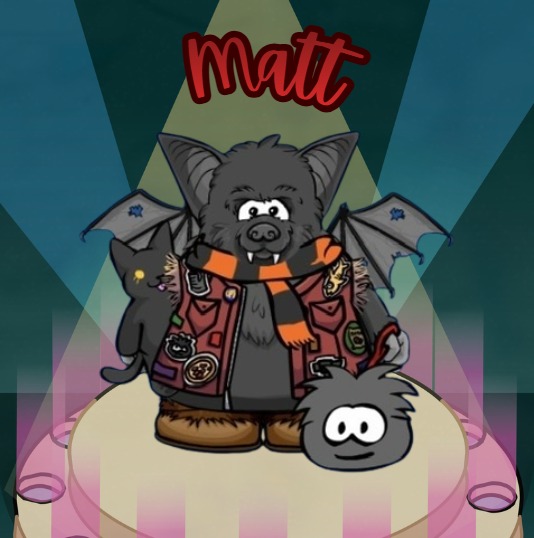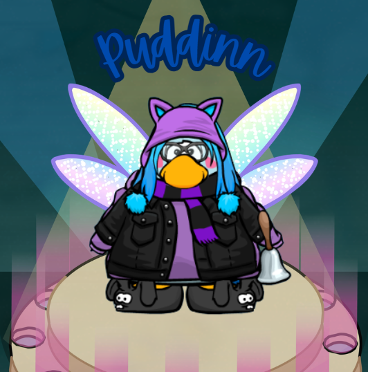 Next up we have our Major Puddinn! Her signature items are taking the non uniform route and they are The Flurry Flutter hairstyle and The Silver Bell. Puddinn mentions that those are her signature items because it reminds her of OG club penguin. FUN FACT: Puddinn has had blue hair for about 9 years now in real life! She continues to share that the bell always reminds her of the Christmas parties and the Coins for Change events and that those were the best times for her. She adds on by saying that the outfit itself represents her because of her favorite colors blue, purple and black, so that’s why there’s a mixture of blues, purples and blacks with her signature items. She shares, “I always love to wear anything black like hoodies, sweaters, jackets, so when CPJ came out with the black denim jacket, it was a must have fit for my penguin.” Puddinn has a iconic style! Don’t you think?