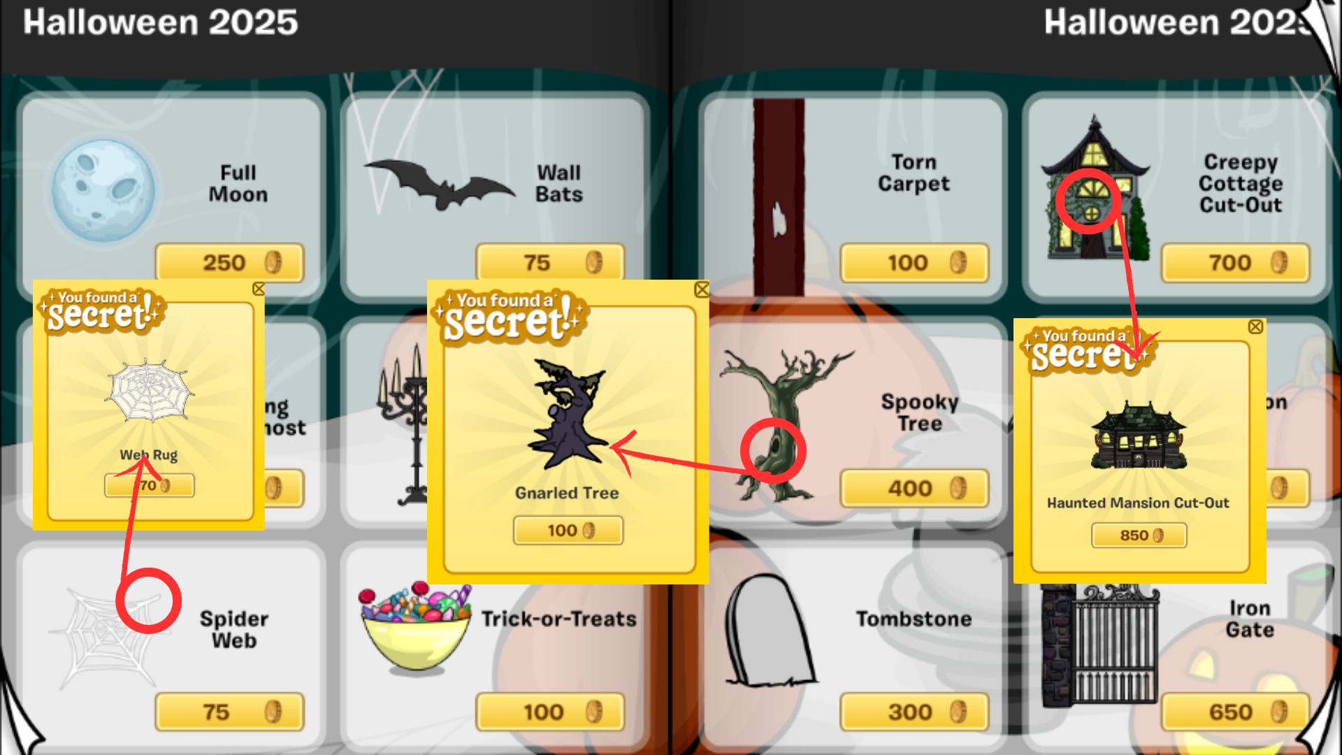 ★ Click the top right of the Spider Web for Web Rug (70 coins)