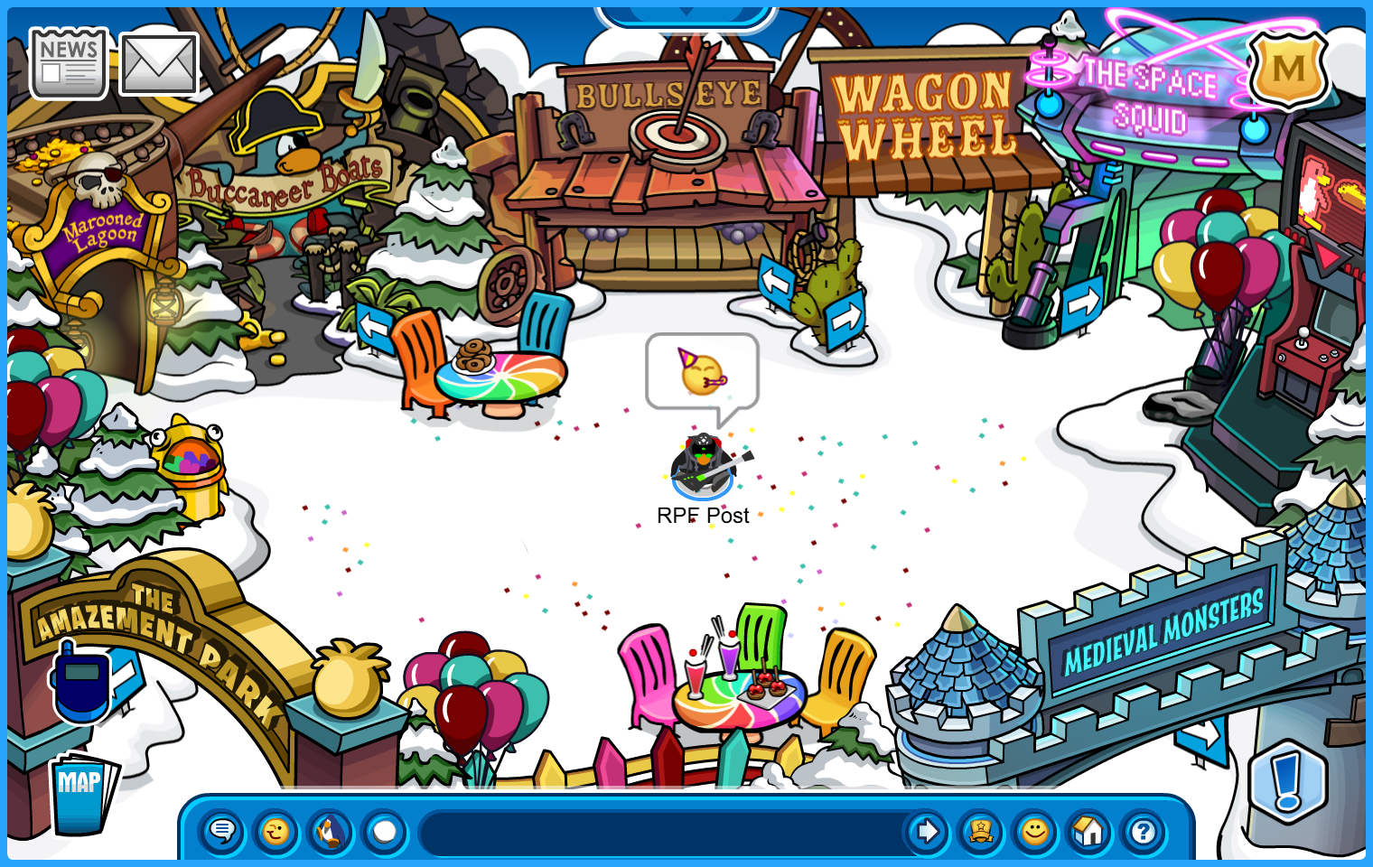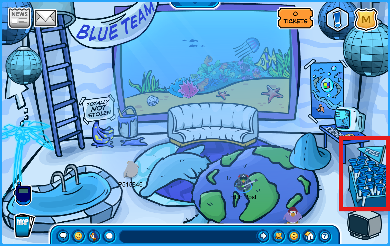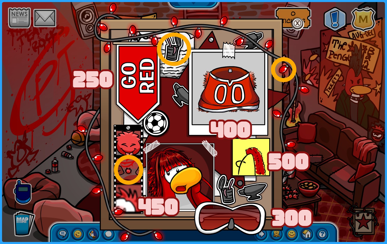 BONUS ROOMS: Blue, Yellow, Green, and Red Team HQ’s. 7 Amazement Park rides, The Great Puffle Circus, and Bonus Game Room.