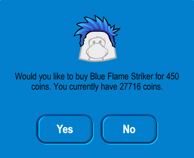 Click the third red dot down on the right for the “Blue Flame Striker” – 450 coins