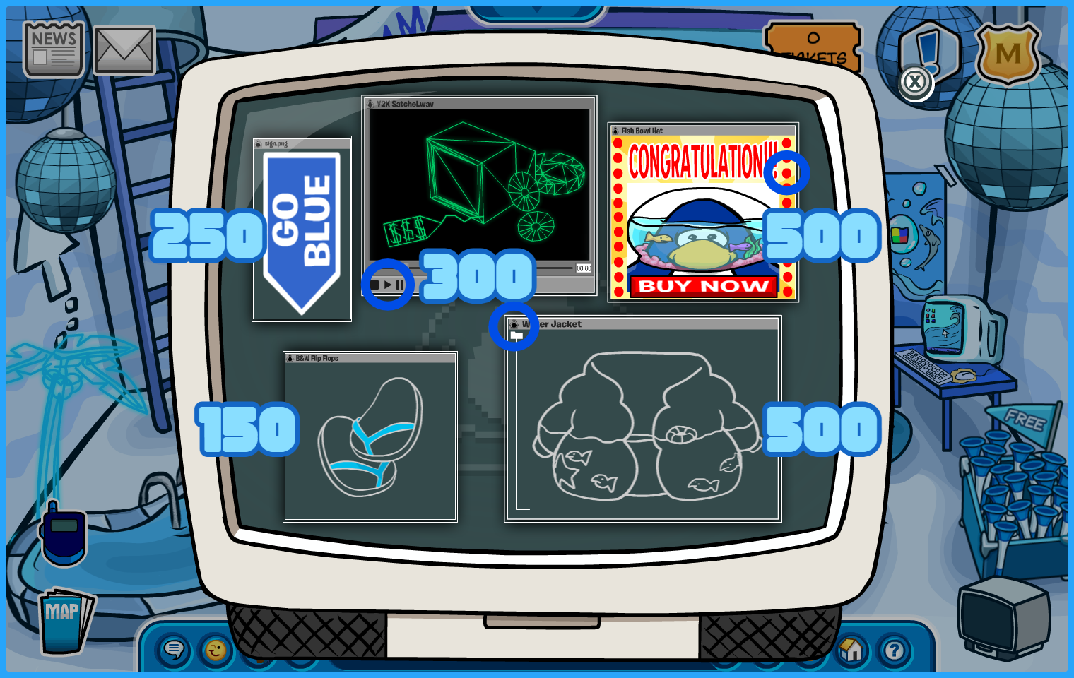 Click the icon to the left of “Water Jacket” for a “Go Blue” background – 60 coins