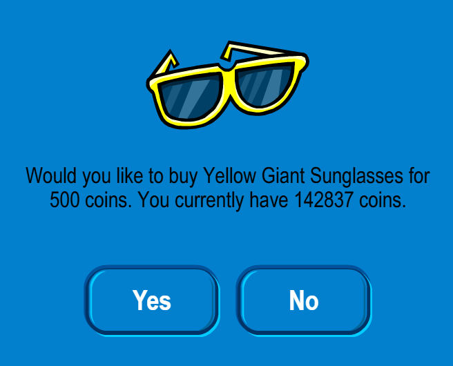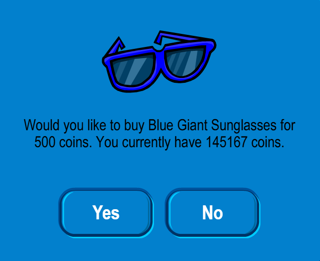 Click the “Play” button for “Giant Blue Sunglasses” – 500 coins