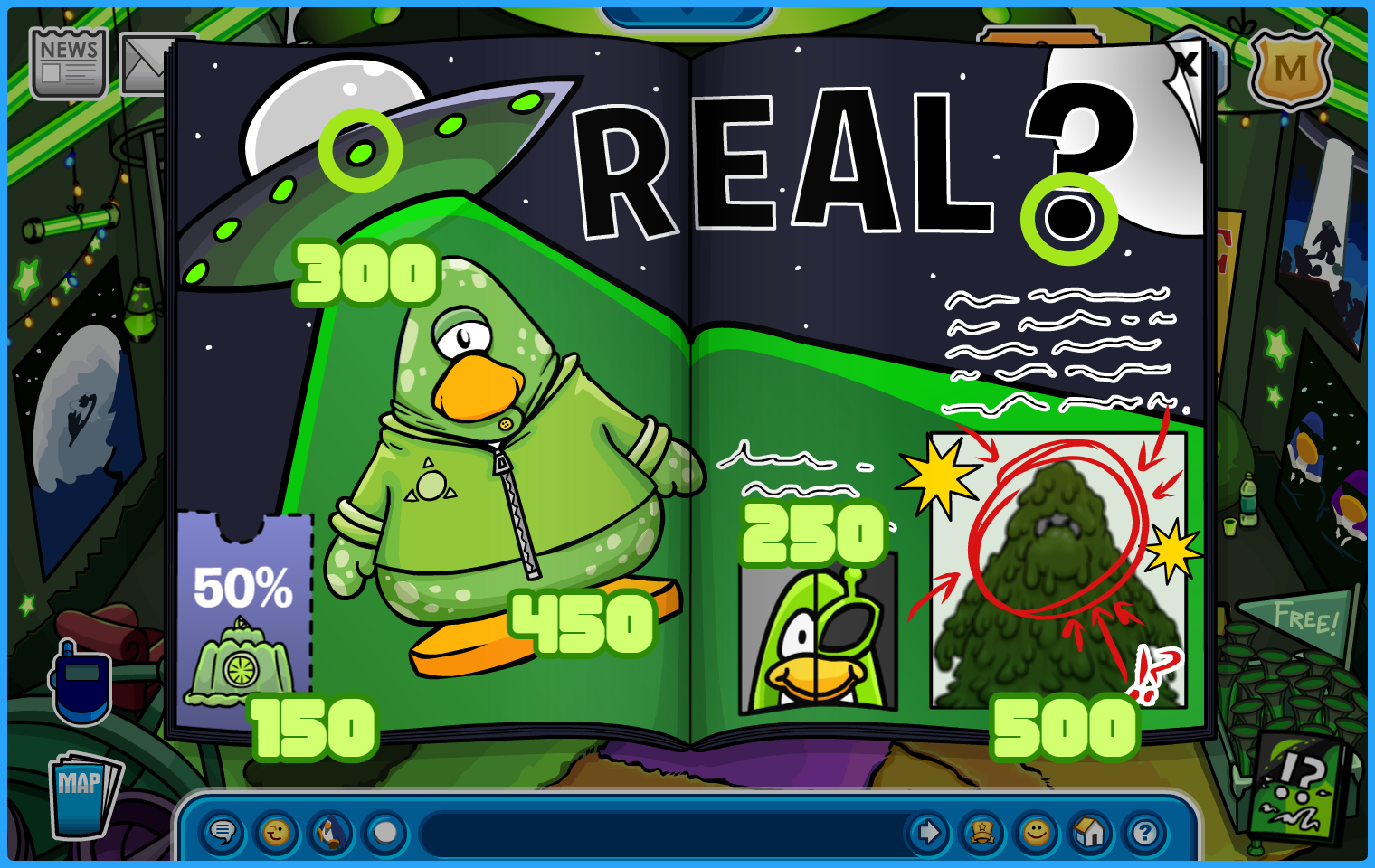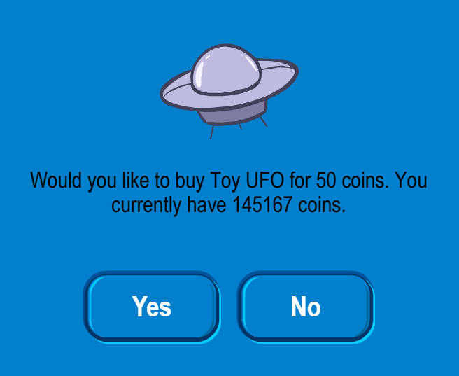 Click the green light on the UFO for a “Toy UFO” – 50 coins