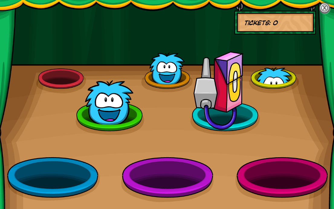 The goal for this game is to find the correct puffle hidden beneath the hats.