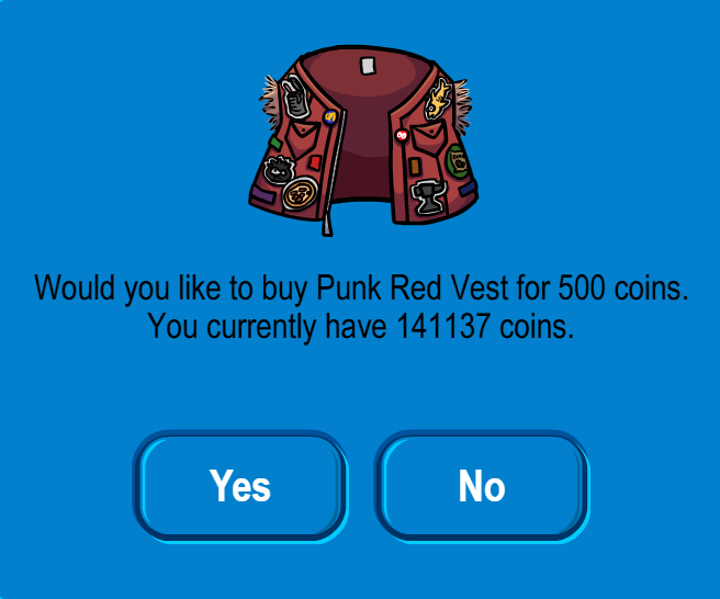 Click the can of worms at the top for a “Punk Red Vest” – 500 coins