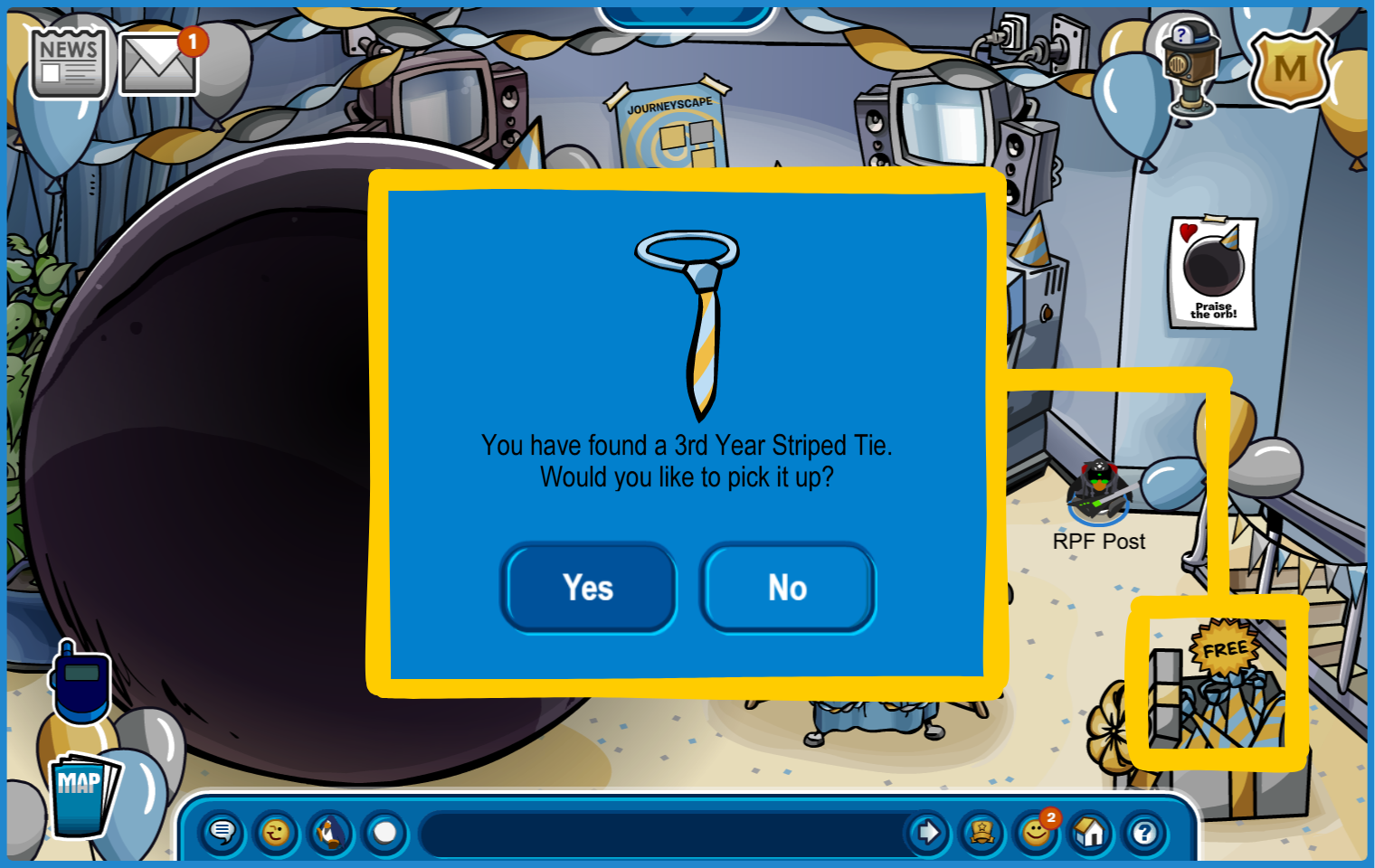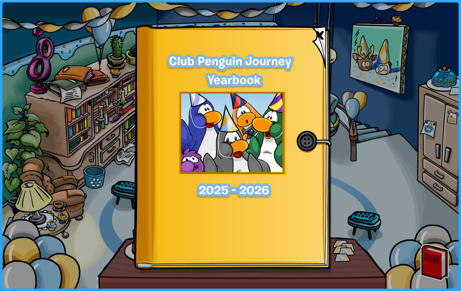 This guide walks you through the free items, the TourBot, Journeyscape, and many more. Starting off, we have the colorful Anniversary-themed rooms with returning rooms from parties in the past year! Check out the Yearbook 2025–2026 displayed in the Book Room and reminisce with each party’s summaries!