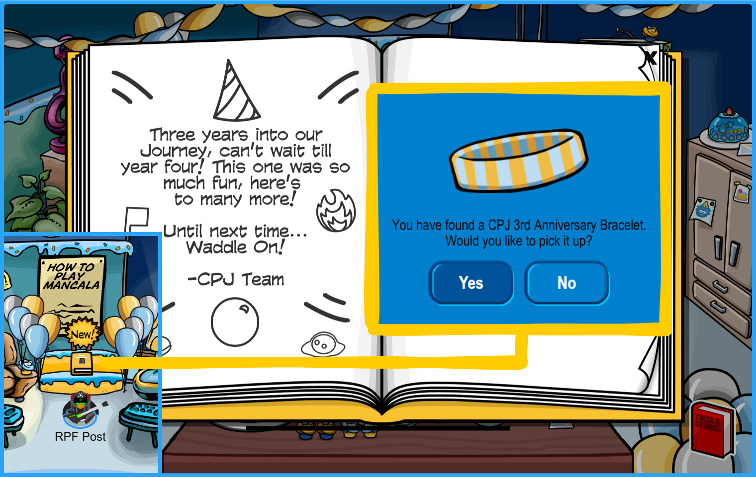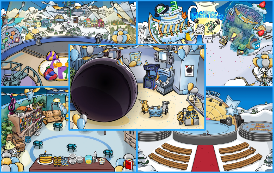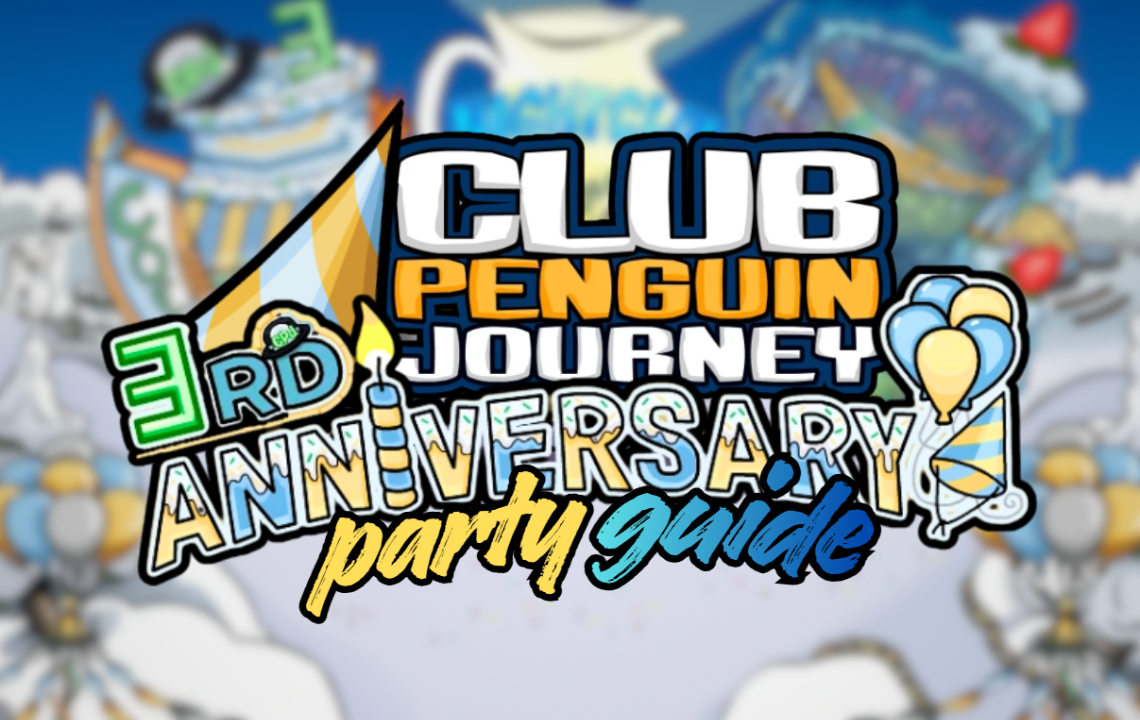 Happy Birthday, Club Penguin Journey! Come celebrate CPJ’s 3rd Anniversary Party from February 5th to 15th by waddling and seeing all the island has to offer, each room decorated with parties that took place through the past year! This party guide has everything you need for the party so join in the fun as we find each item, stamps, and meeting two of our favorite mascots!