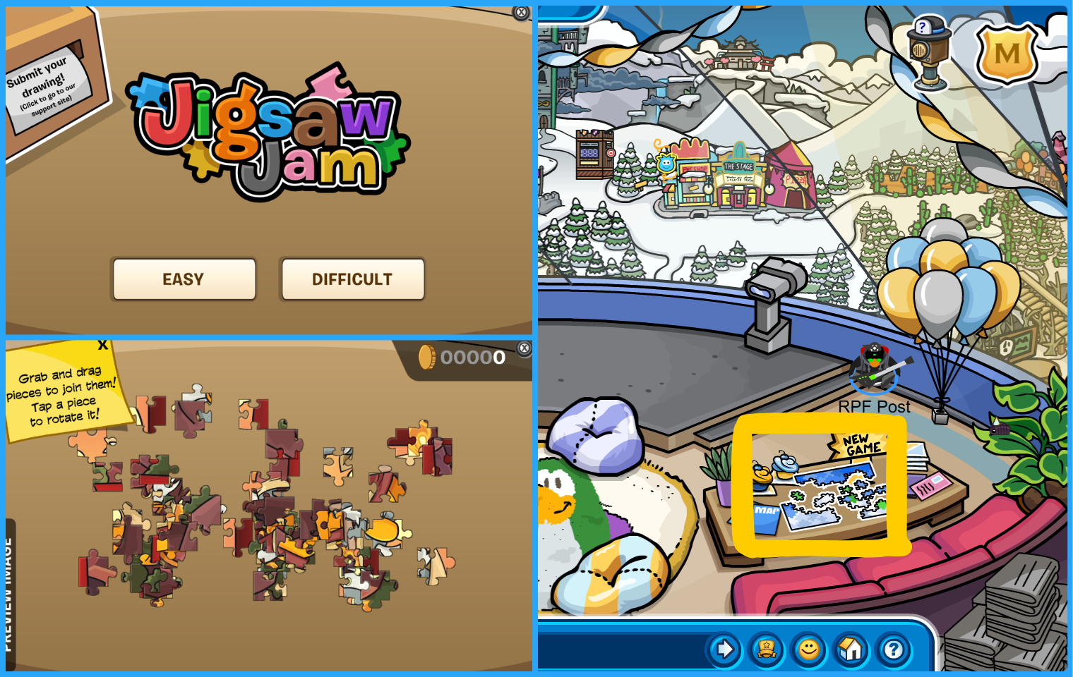 Club Penguin Journey releases its new mini-game, Jigsaw Jam found at the renovated Lookout! Featuring original CPJ Artworks, have fun putting these pieces together on easy or difficult mode! You may also submit your own work, which could be featured in future puzzles!