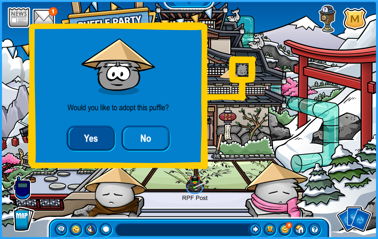 Adopt a Sensei Puffle at the Dojo Courtyard from the roof.