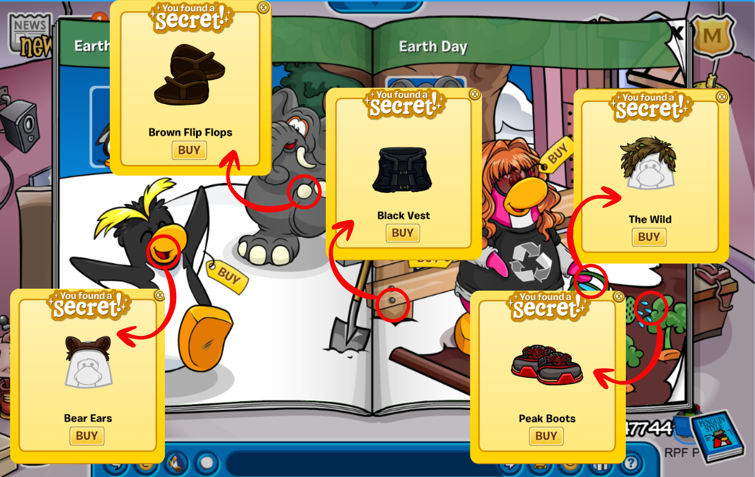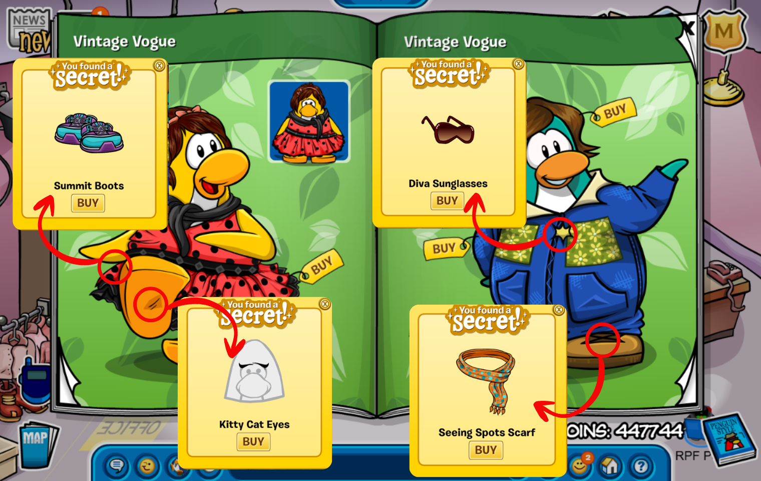 Summit boots – Click the dot on the left penguin’s skirt – 250 coins