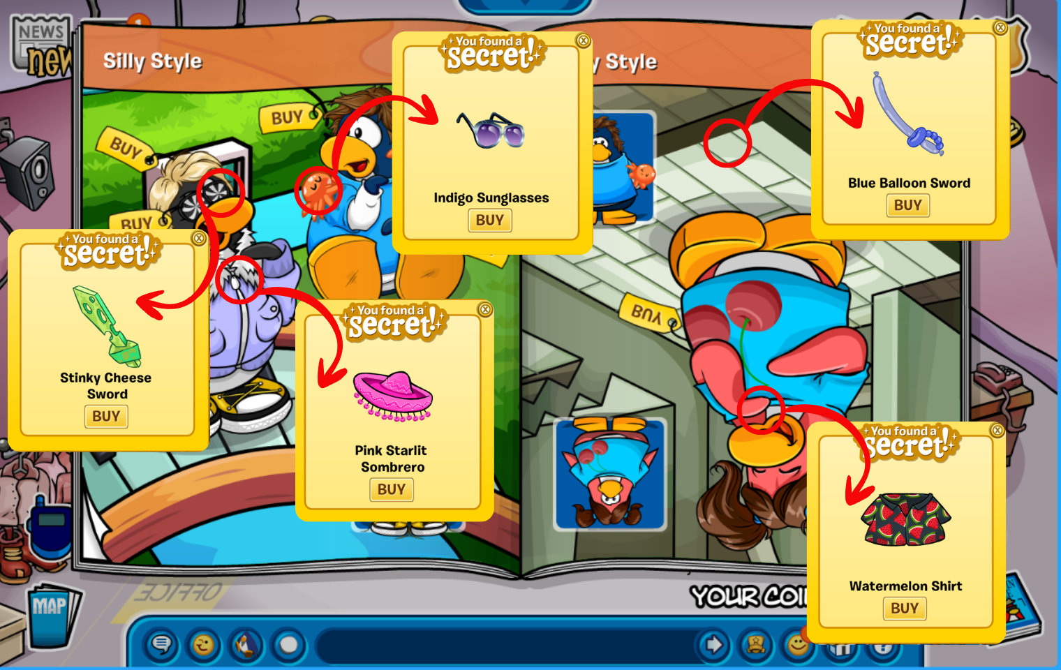 Stinky cheese sword – Click the right part of the left penguin’s glasses – 50 coins