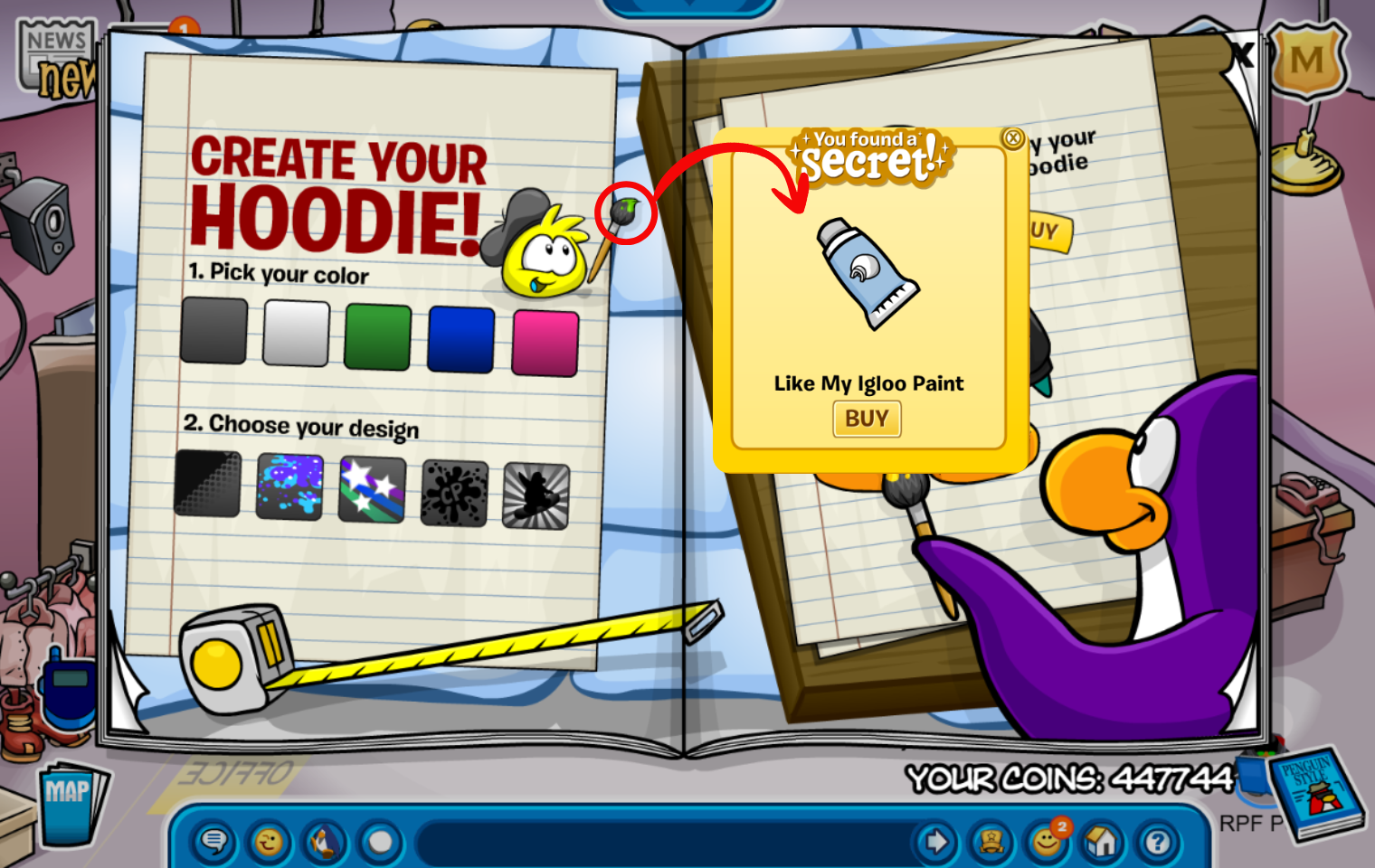 Like my igloo paint – click the puffle’s paintbrush – 400 coins