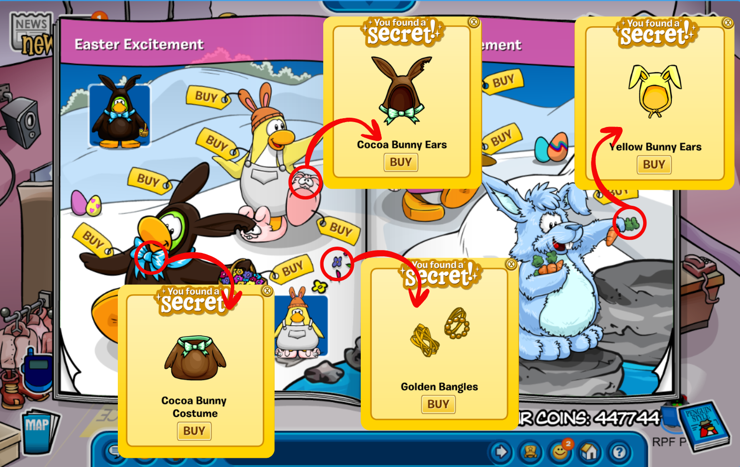 Kitty cat eyes – Click the groove in the left penguin’s foot – 150 coins