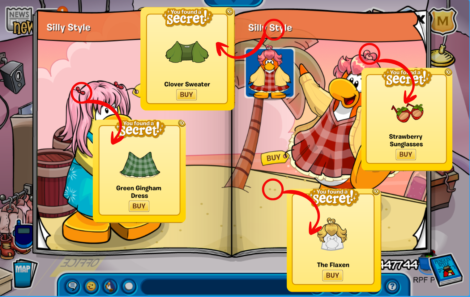 Strawberry sunglasses – Click on the loop in the right penguin’s wig – 150 coins