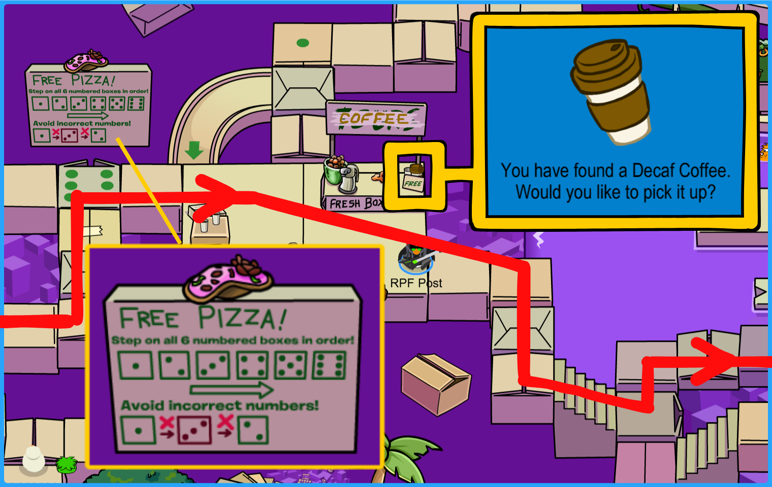 Get your Decaf Coffee east from the instructions and keep heading east!