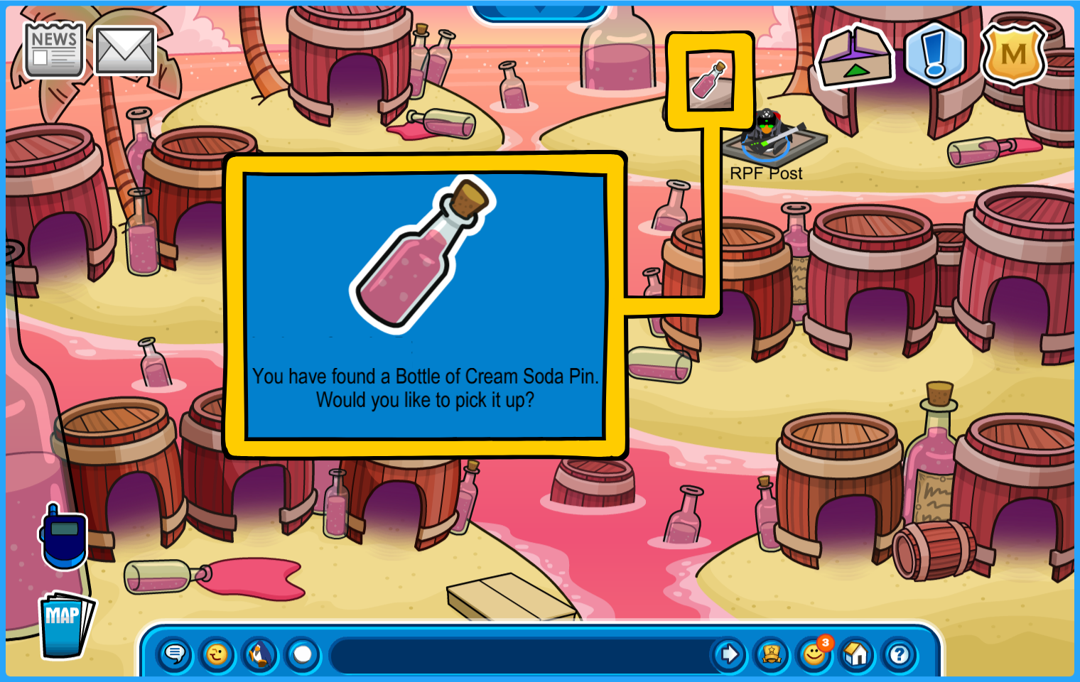 Location: Dock. Click on the baby bottle beside the trees!