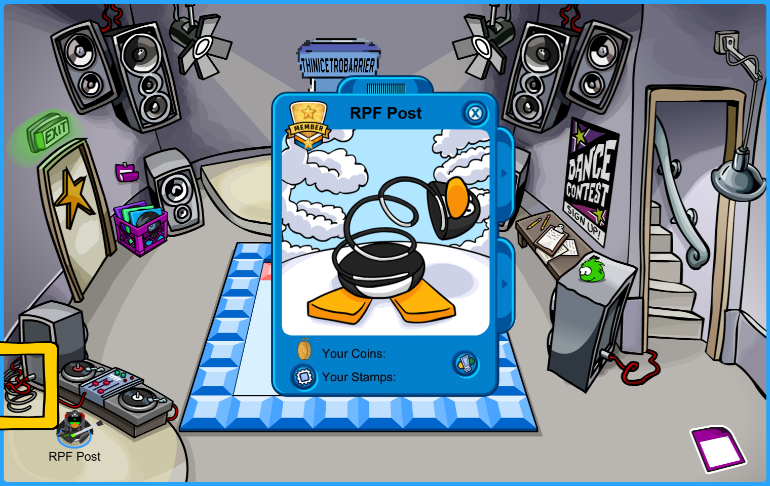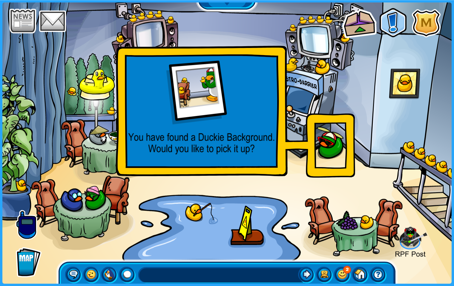Location: Dance Lounge. Click on the Rookie-esque duckie to get the background!