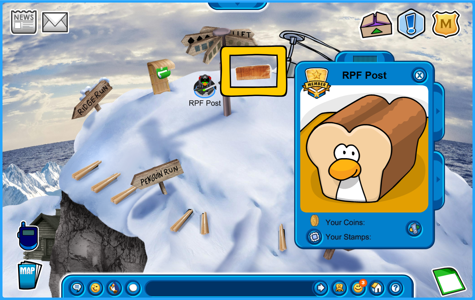 Location: Ski Hill. Get your bread on top of the hill!