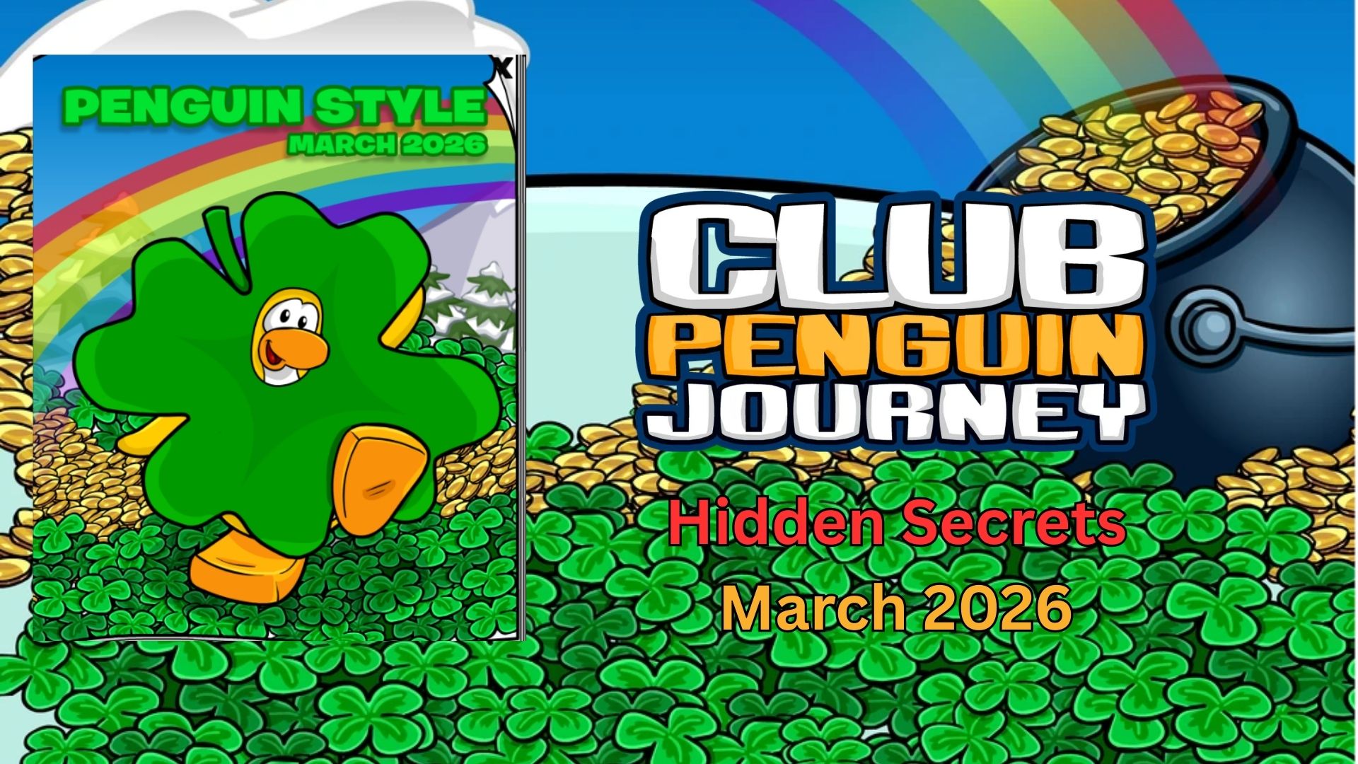 Happy March! Club Penguin Journey has released the March 2026 Penguin Style catalog for the St. Patrick’s Party, which will be happening from March 13th–March 17th. There will also be a secret mysterious party, but don’t worry the Club Penguin News Team is back with another amazing guide to help you find all the catalog secrets hidden throughout the catalog. So let’s get started!