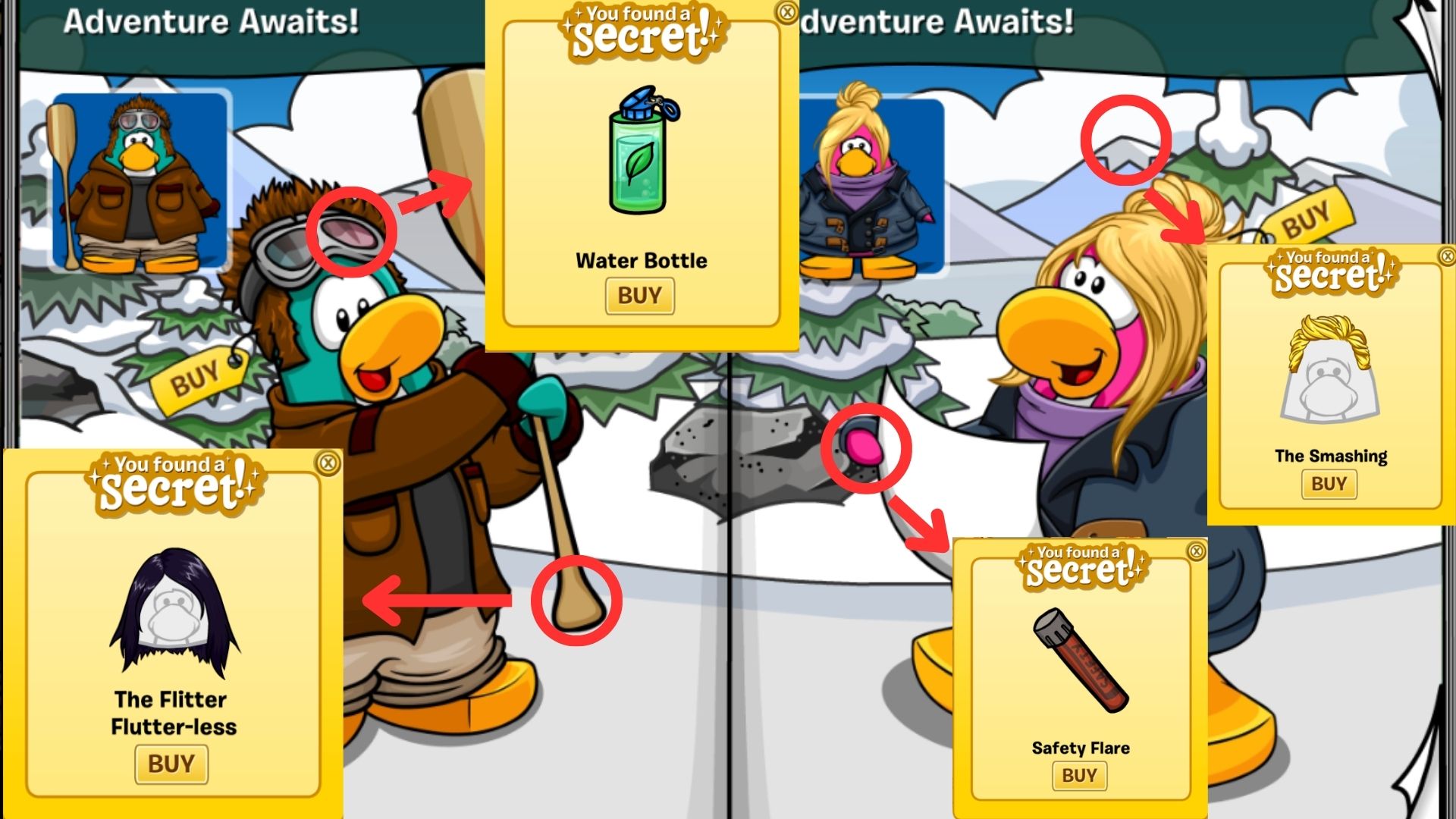 Safety Flare: Click on the Pink Penguin left hand– 200 coins