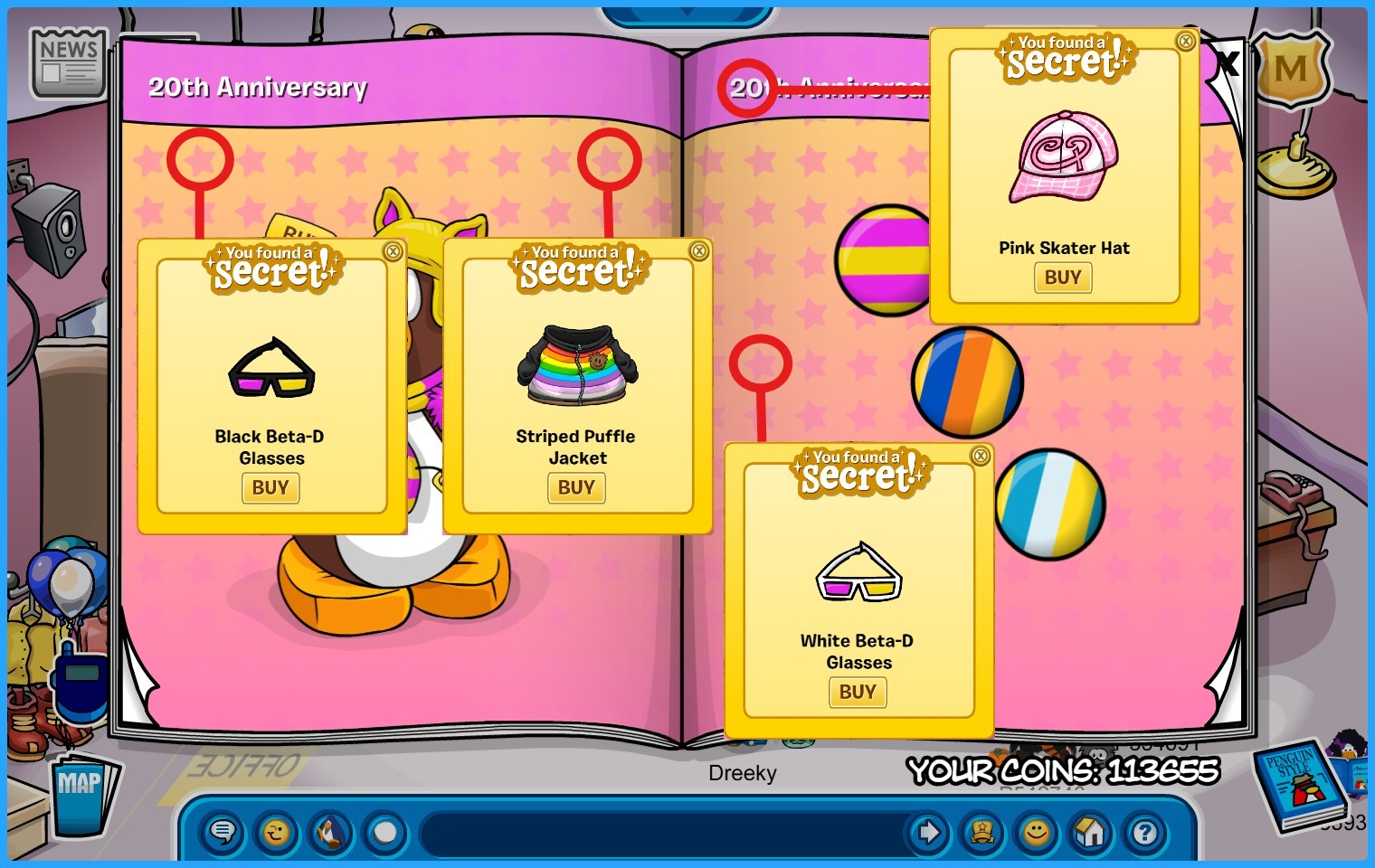 Pink Starter Hat: Click “20th” in “20th Anniversary” – 200 coins