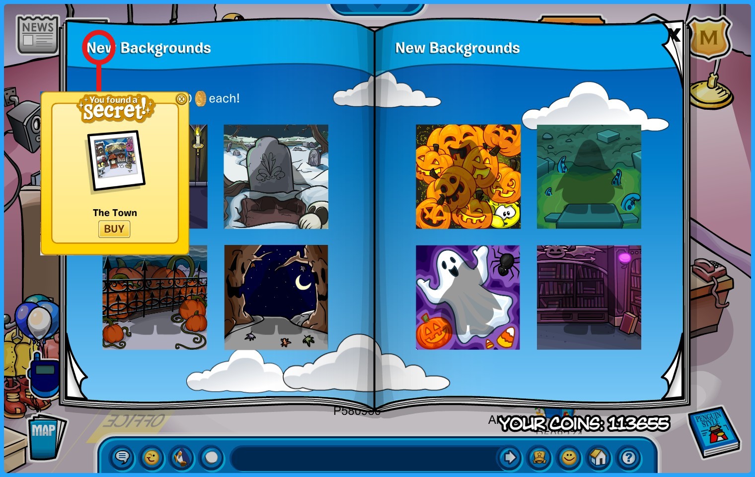 The Town: Click “New” in “New Backgrounds” – 60 coins