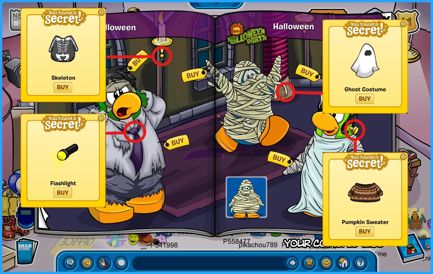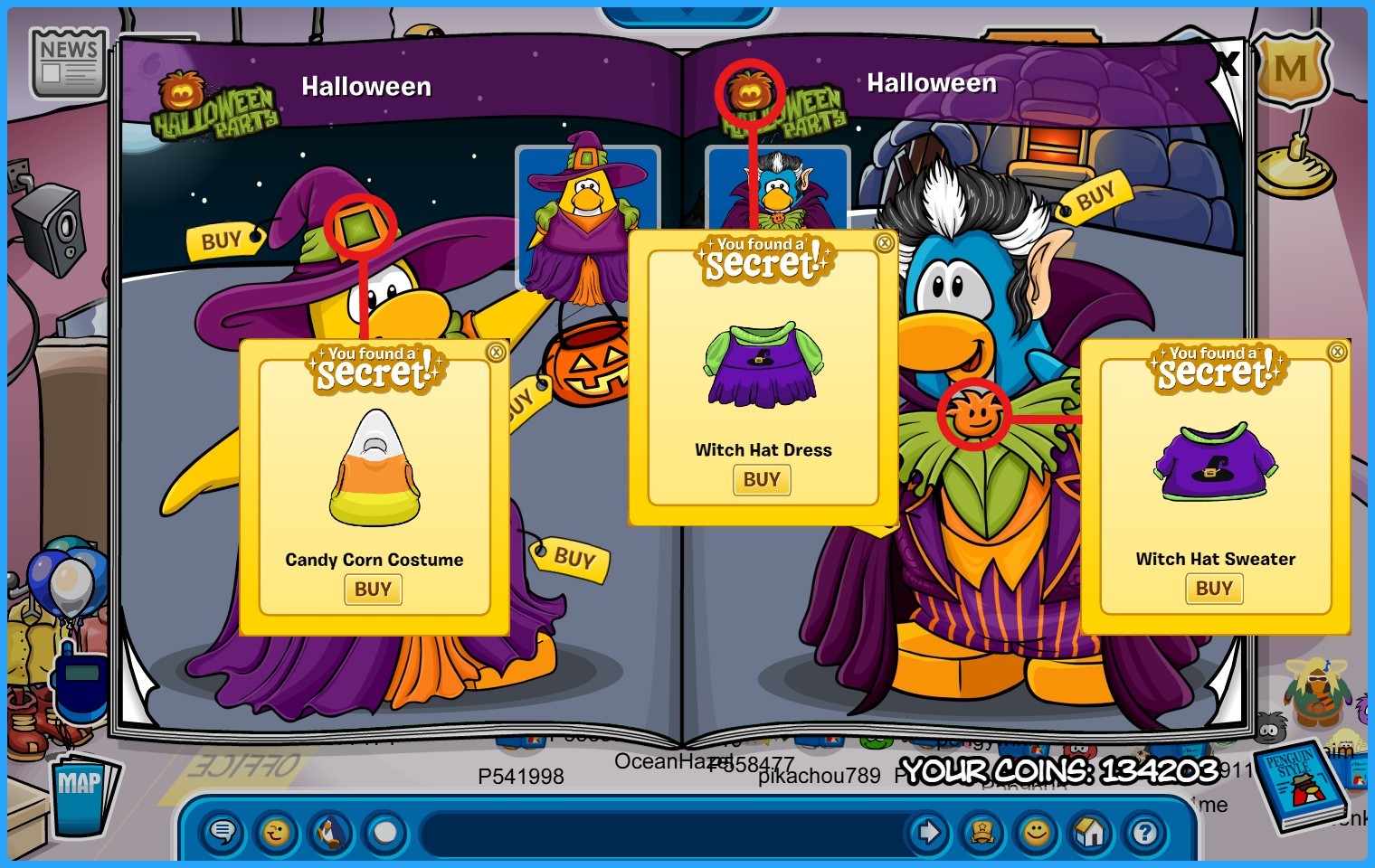 Witch Hat Sweater: Click the cape’s pumpkin buckle – 350 coins