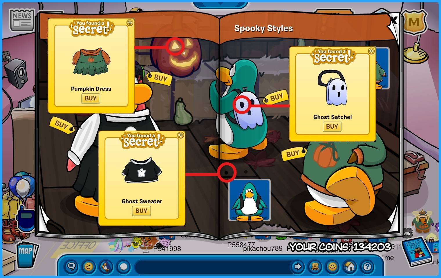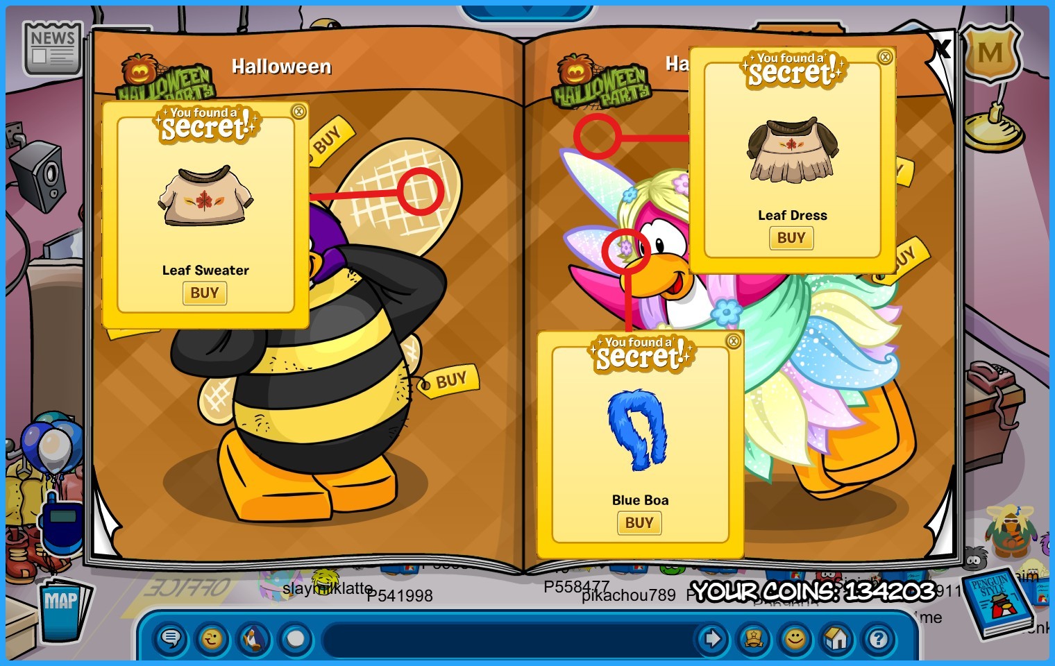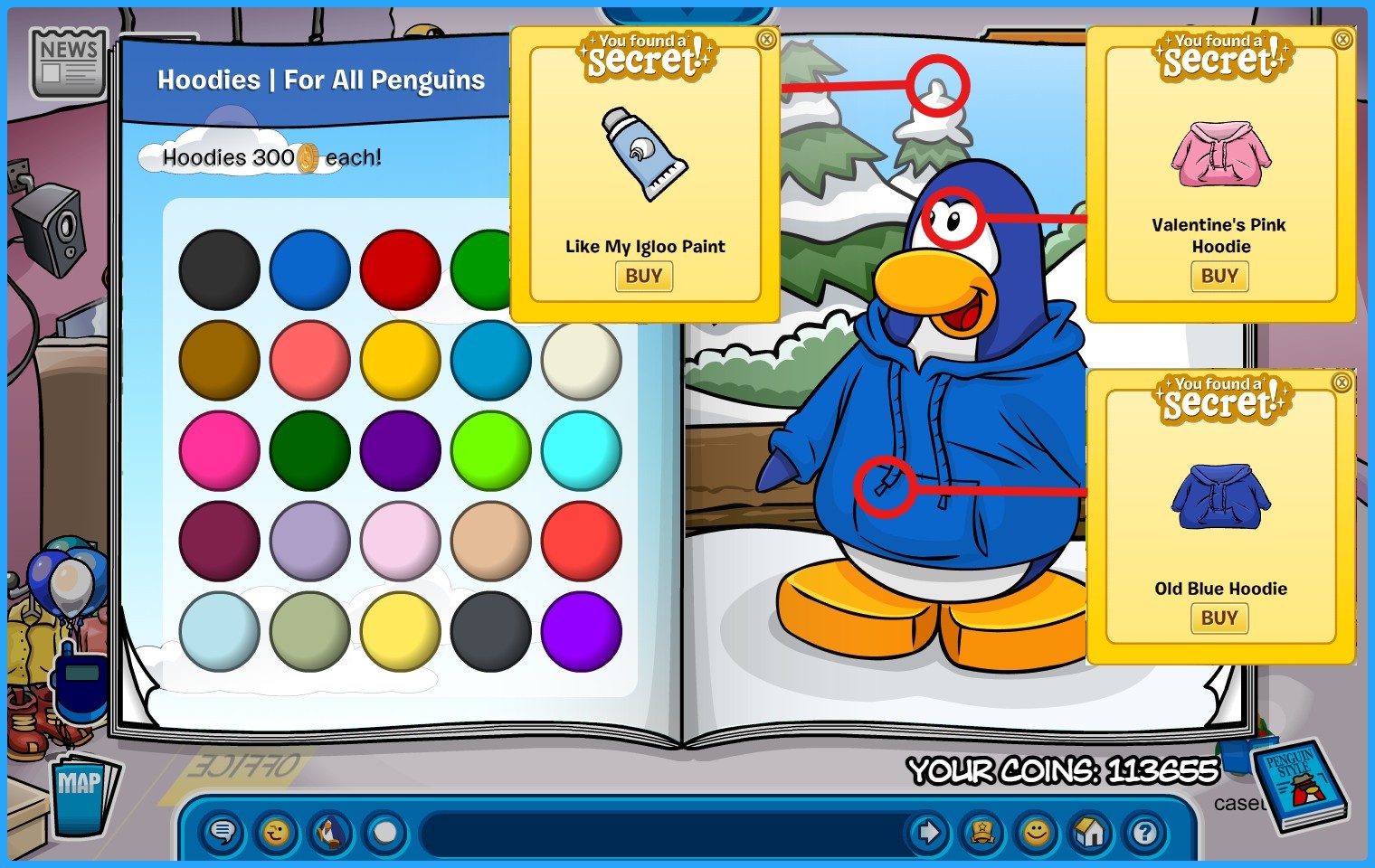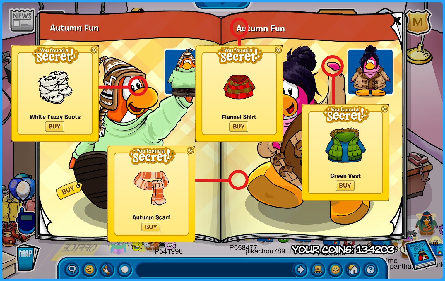 Puffle Fall Sweater: Click the button on the penguin’s jacket – 400 coins