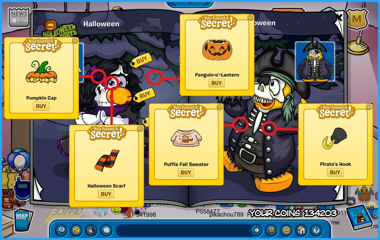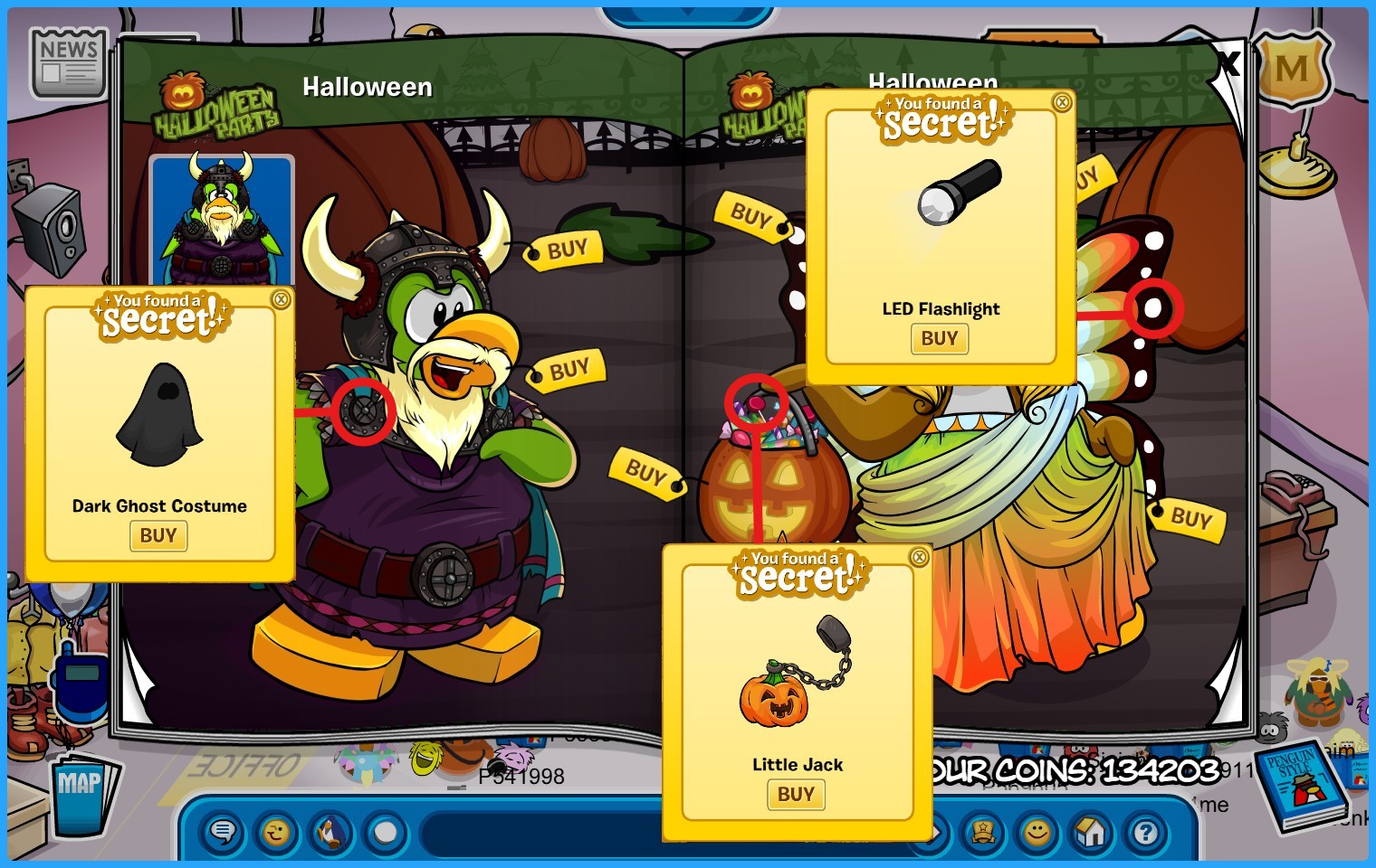 Pirate’s Hook: Click the button on the penguin’s jacket – 100 coins
