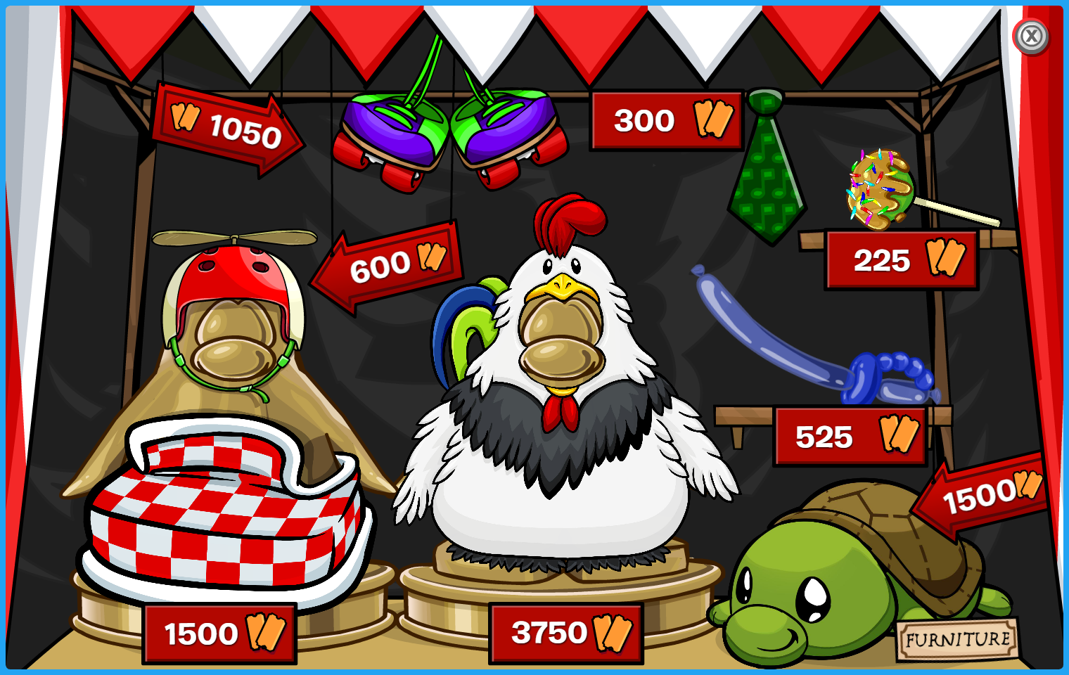 During each game you will earn tickets that you can use to buy prizes. Tickets do not reset daily! A new feature has also been introduced, where 2 different carnival games will take the spotlight in the Double Ticket Interface located in the top right corner of the screen.