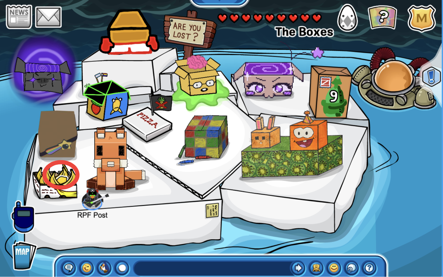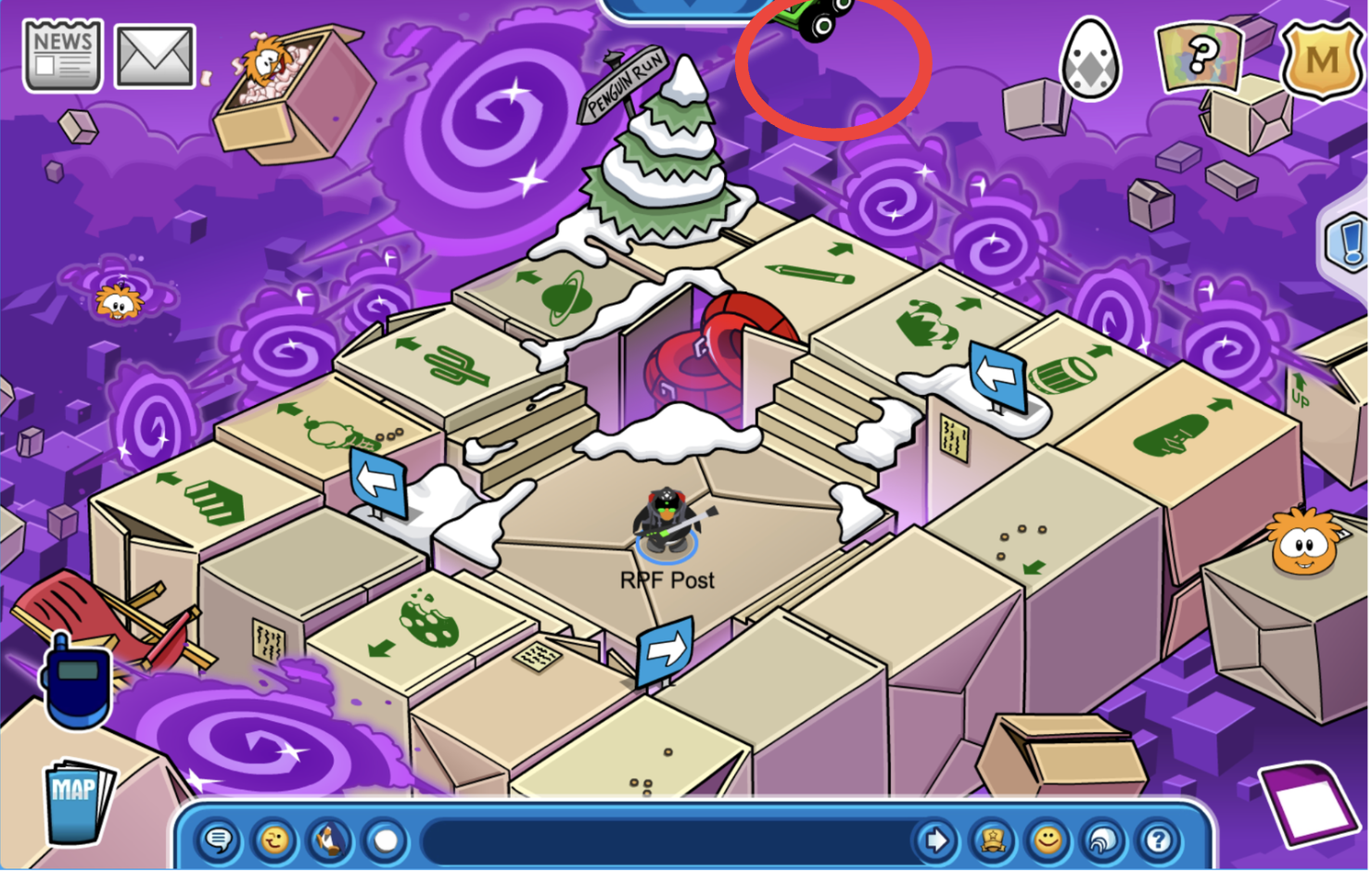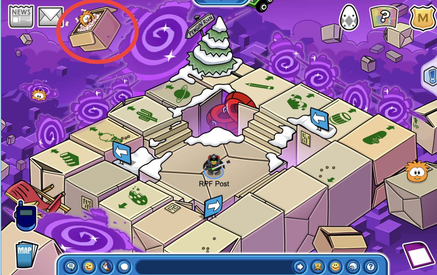 Head over to the Box Dimension and wait for the wagon puffle to come. It will come on the left side of the screen, it will up every 15 mins! Please note while the timer says “15” minutes, this quest may take an hour to complete!