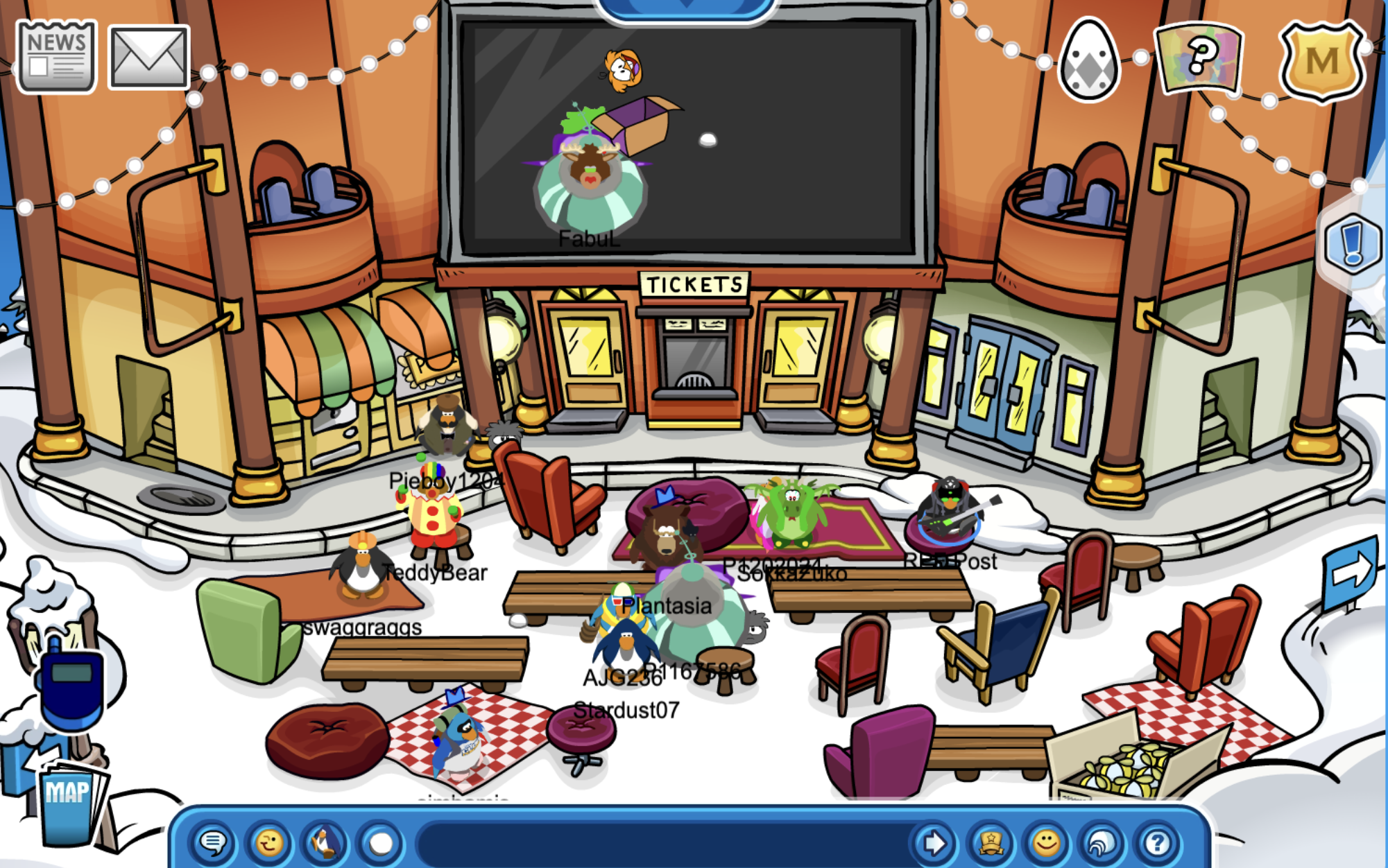 Enter the Pizza parlor and throw snowballs with 15 penguins!