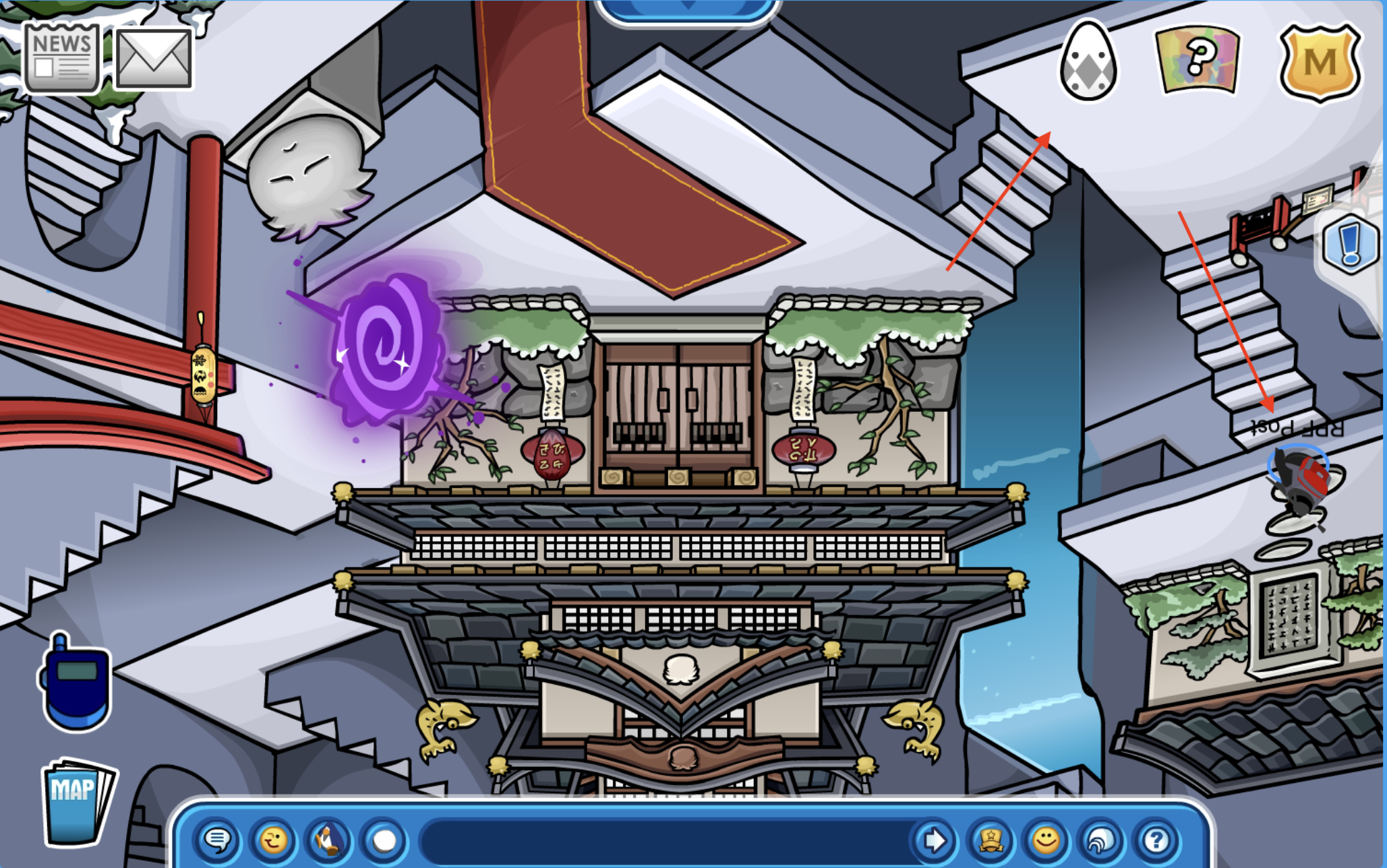 Go to the Dojo and go up and down the stairs.