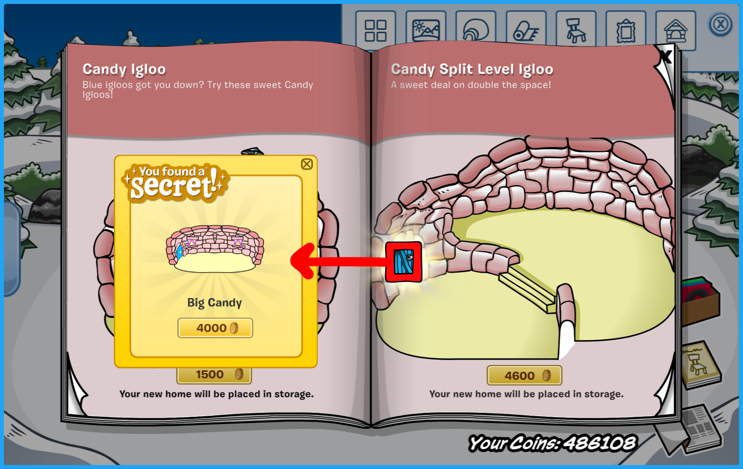 Big Candy Igloo: On the door of the Candy Split Level Igloo – 4000 coins