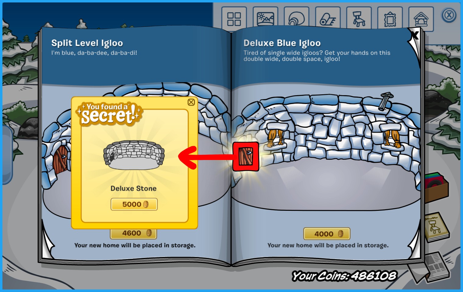 Deluxe Stone Igloo: On the door of the Deluxe Blue Igloo – 5000 coins