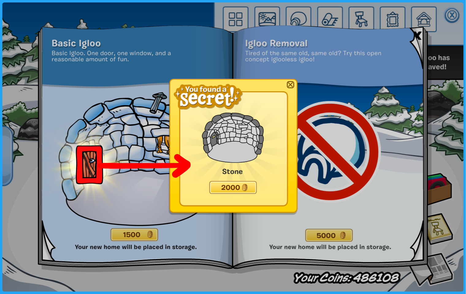 Stone Igloo: On the door of the Basic Igloo – 1500 coins