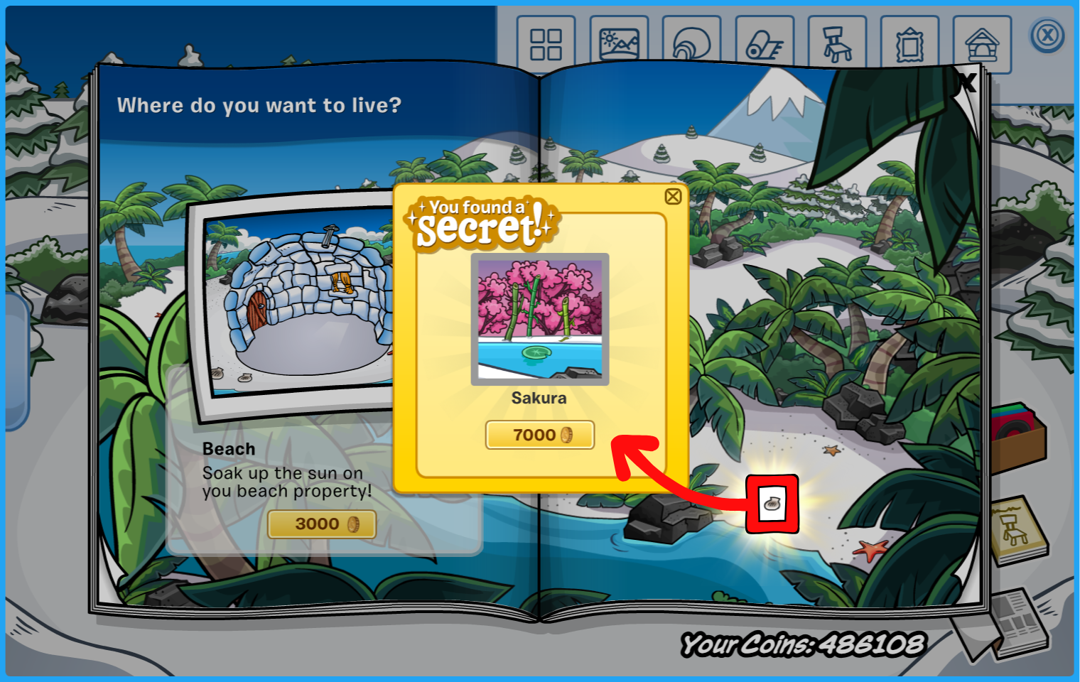 Sakura Igloo: On the seashell by the shore to the right – 7000 coins