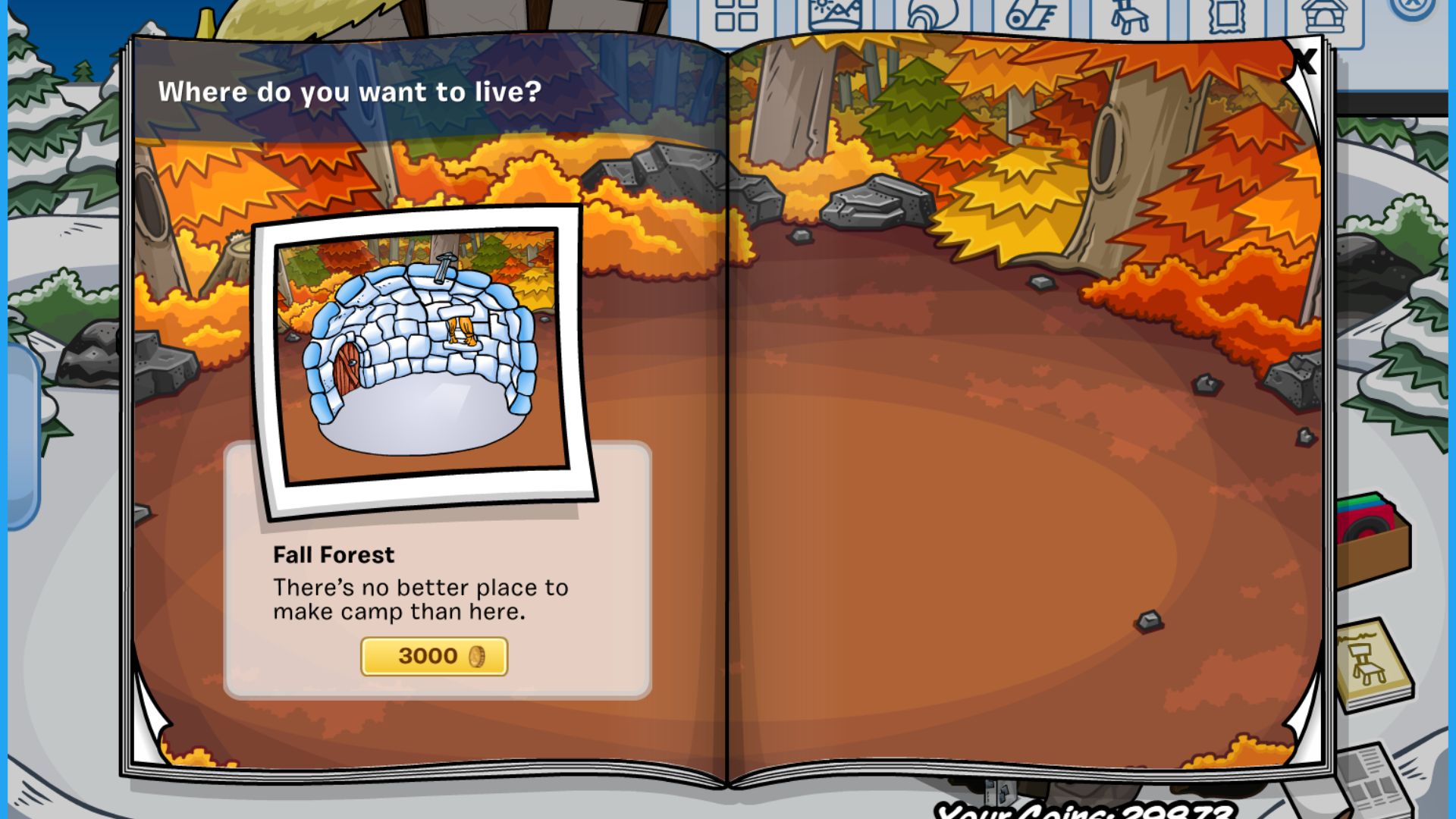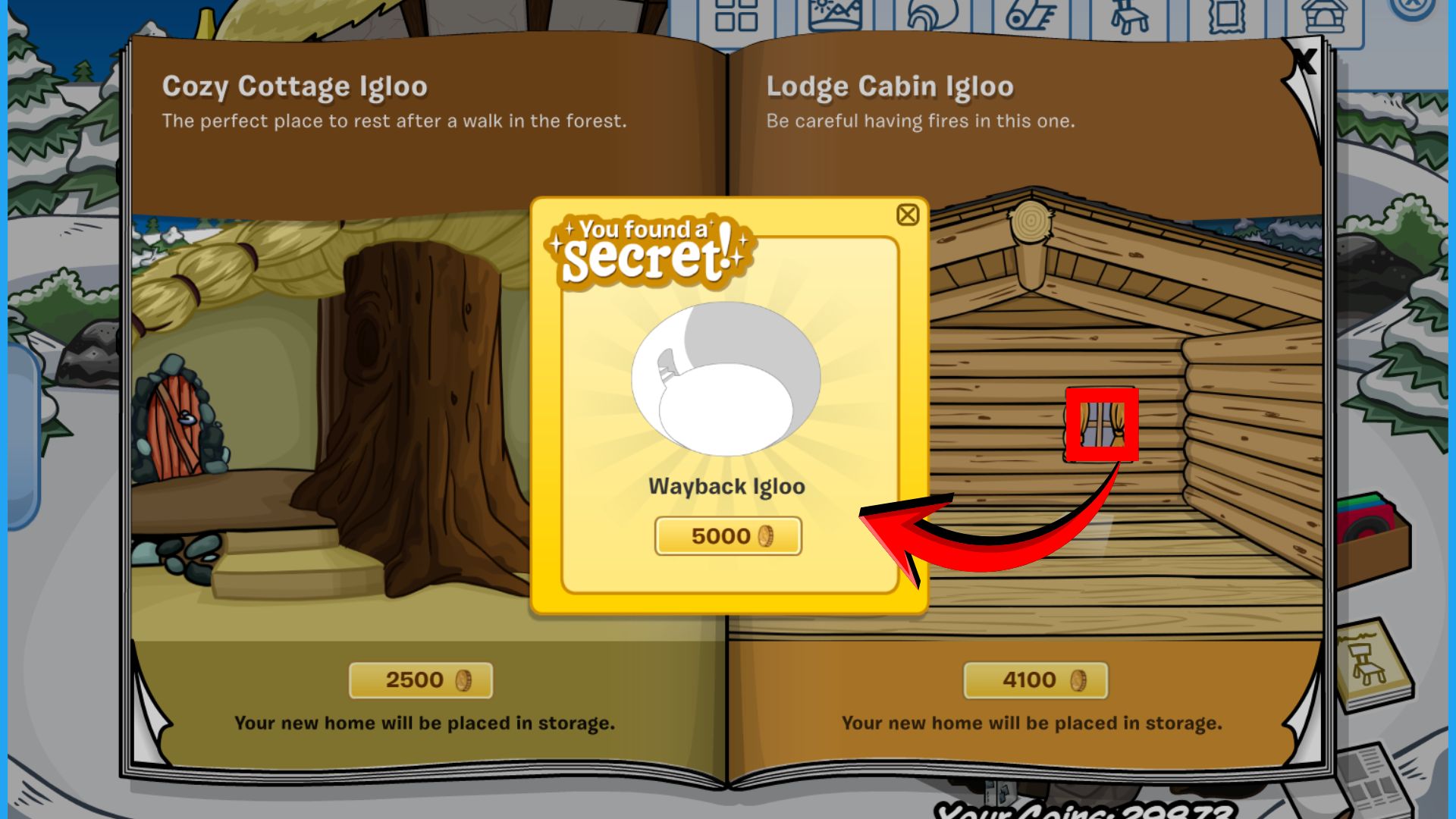 Click the window to purchase the Wayback Igloo for 5000 coins
