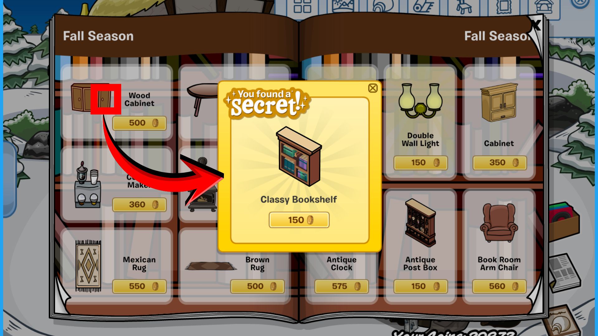 The Classy Bookshelf can be purchased for 150 coins by clicking on the doorknob
