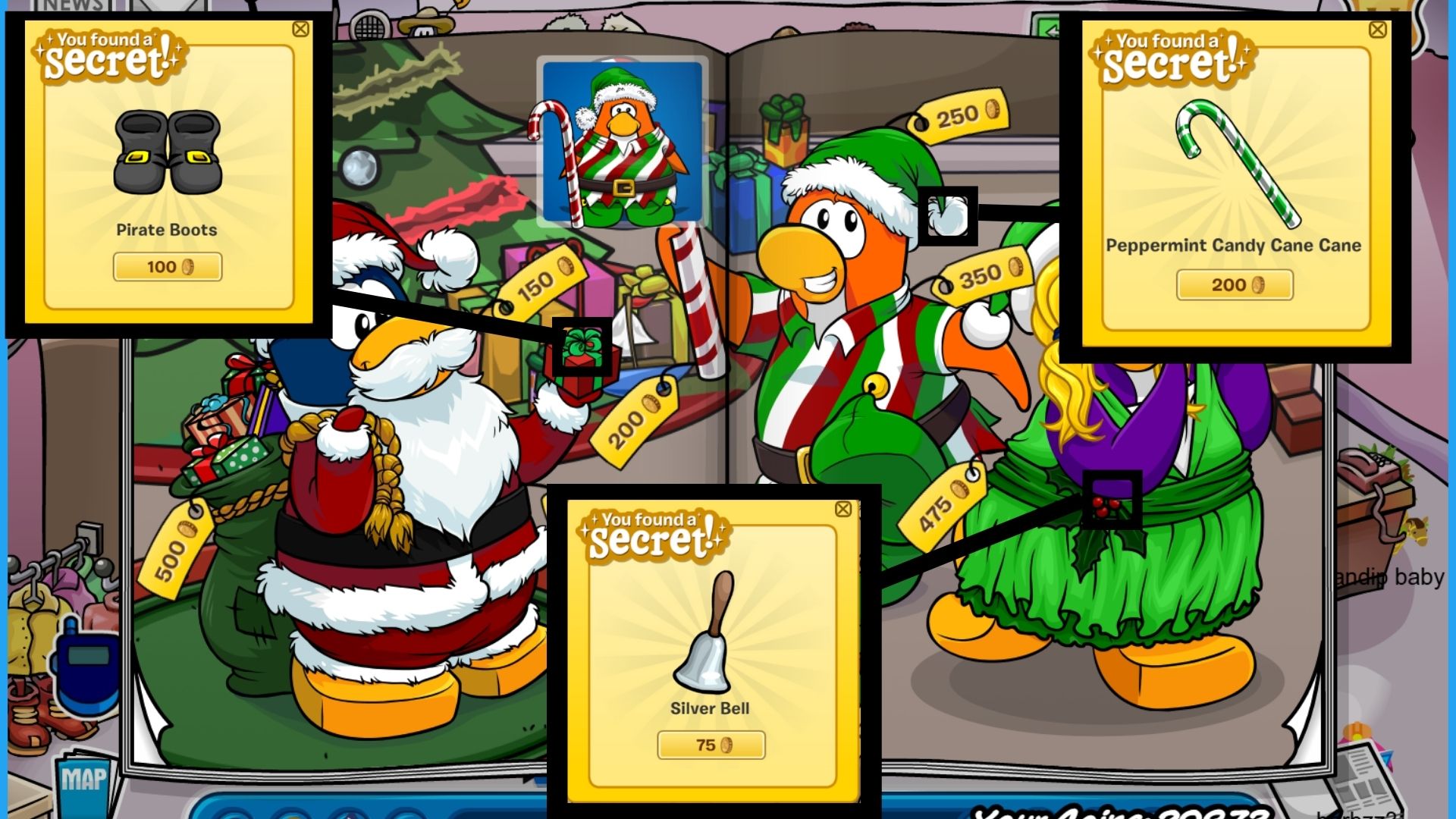 - The peppermint candy cane cane found on the hat for 200 coins