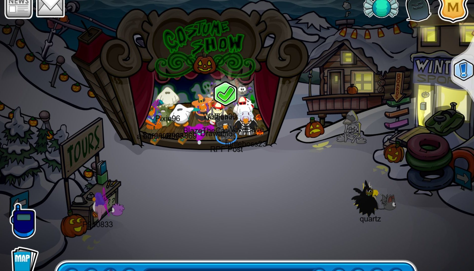 You’ll earn your trick or treat bag when you go to the Snow Forts. A witch penguin will greet you and explain how to trick or treat. Get through the dialogue to complete this quest, you will be given the trick or treat bag. If the witch penguin pop up isn’t showing, try clearing your cache
