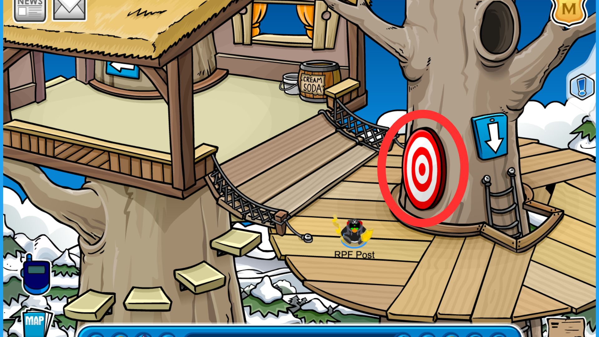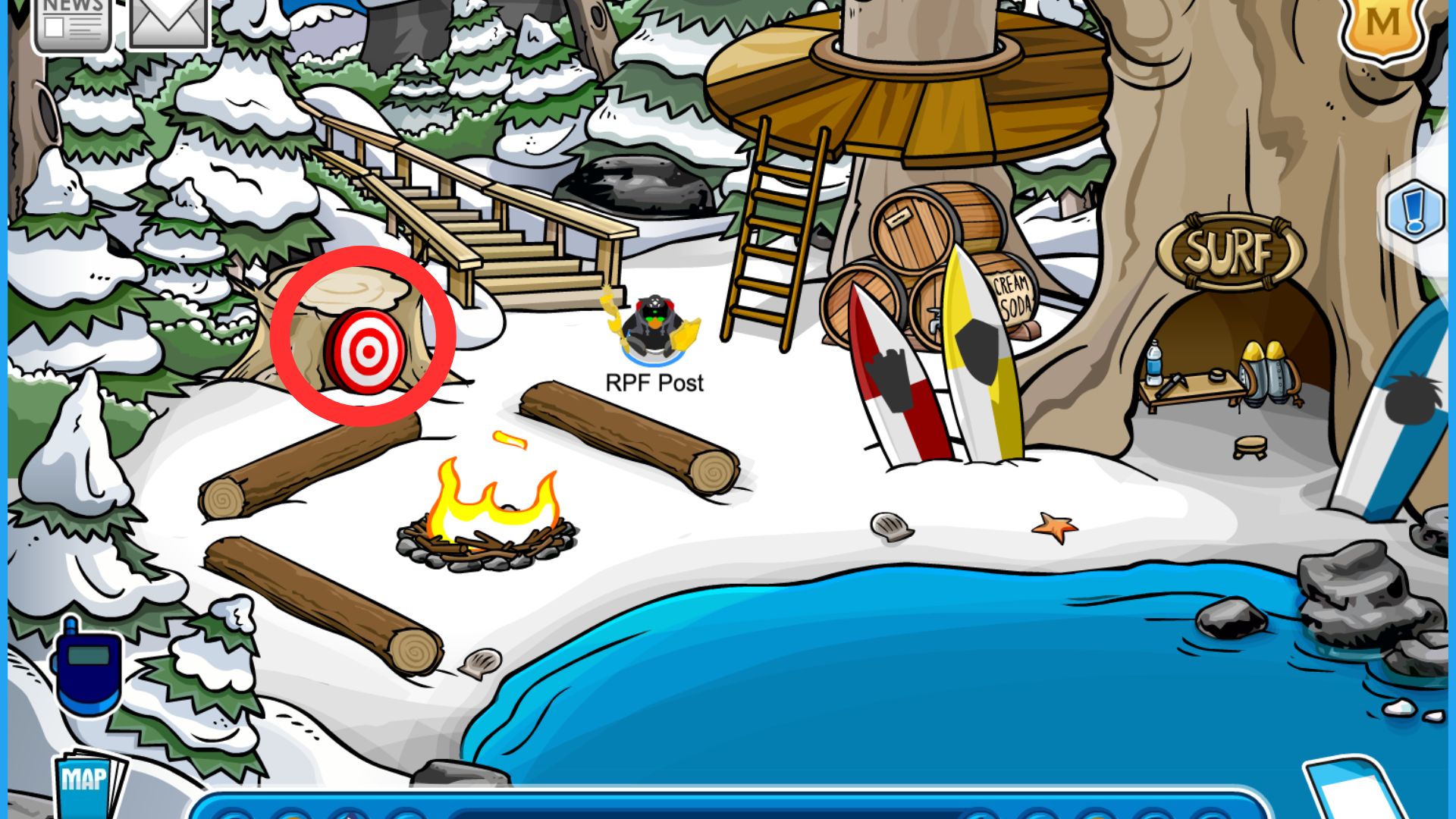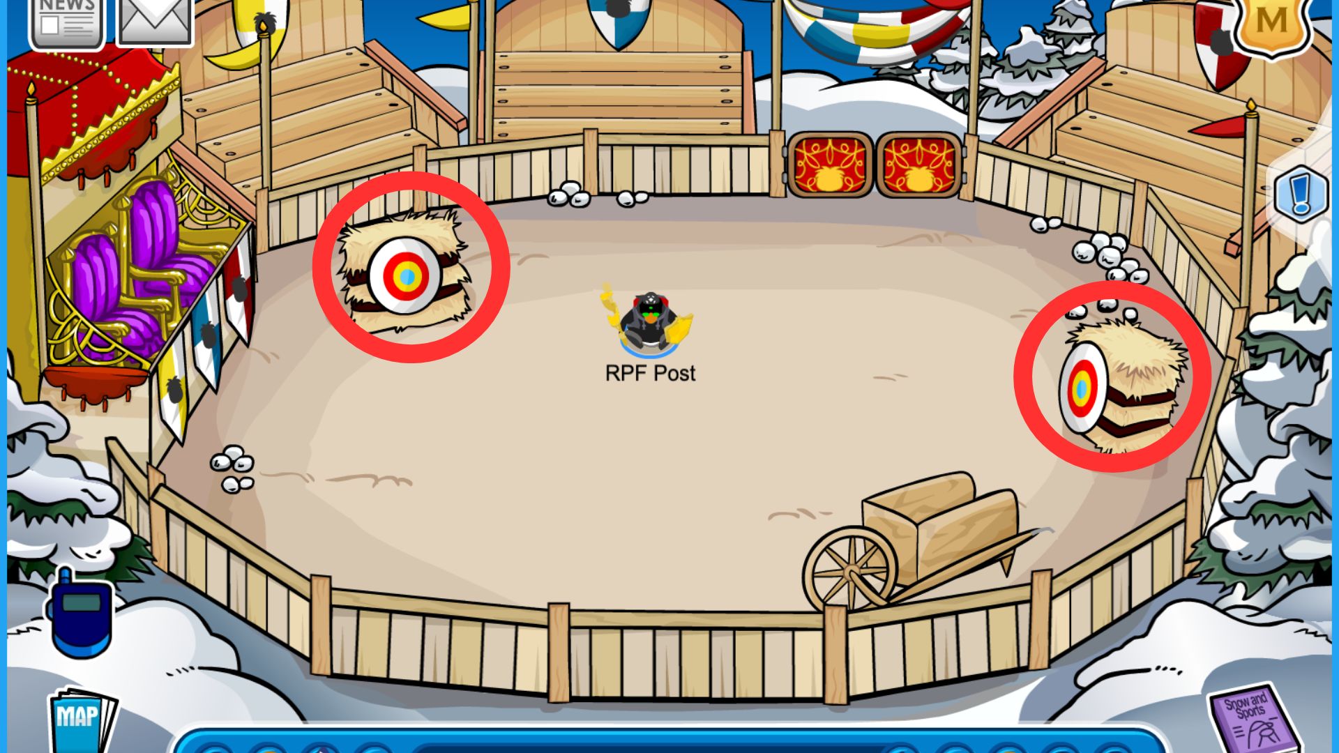 Head over to the Stadium and throw snowballs at the 2 targets that are there!
