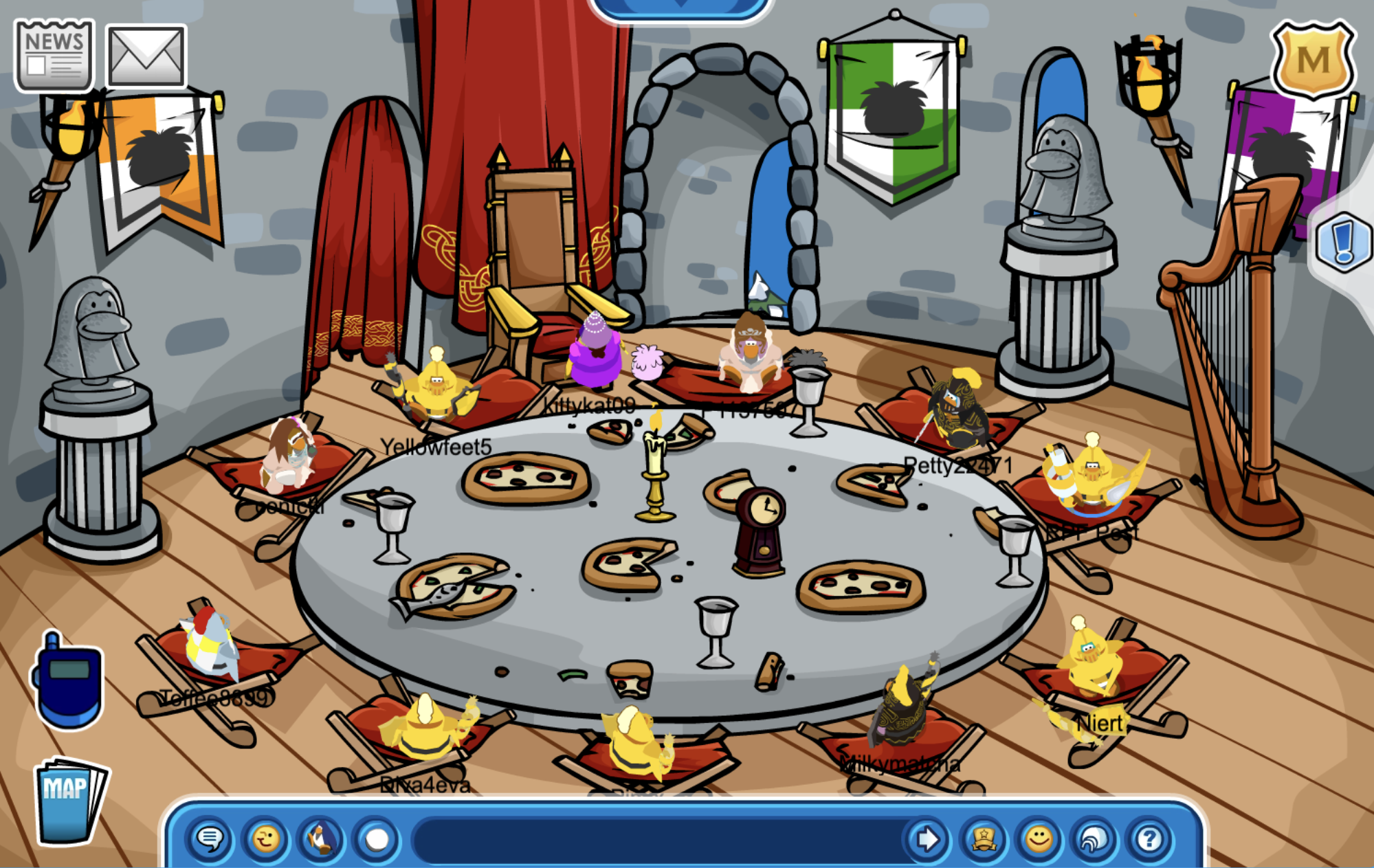 Head over to the Pizza Parlor and feast with 9 other penguins wearing any Knight’s outfit from the Knight’s Quest or from this month’s Penguin Style catalog!